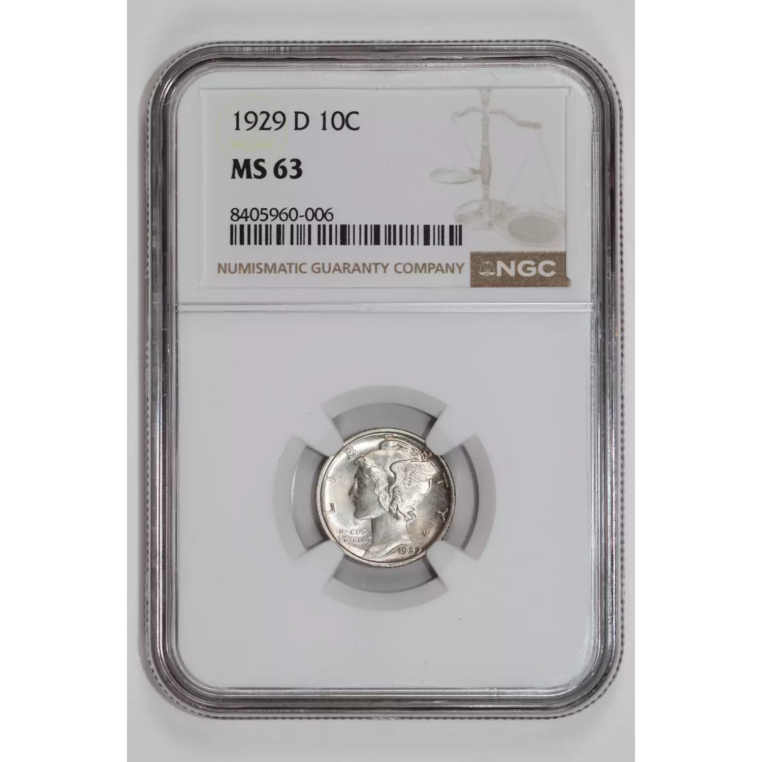 1929-D Dimes Winged Liberty Head or Mercury NGC MS-63