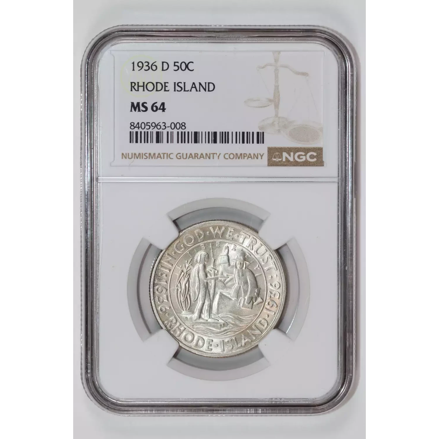 1936-D RHODE ISLAND COMMEMORATIVE HALF DOLLAR NGC MS64