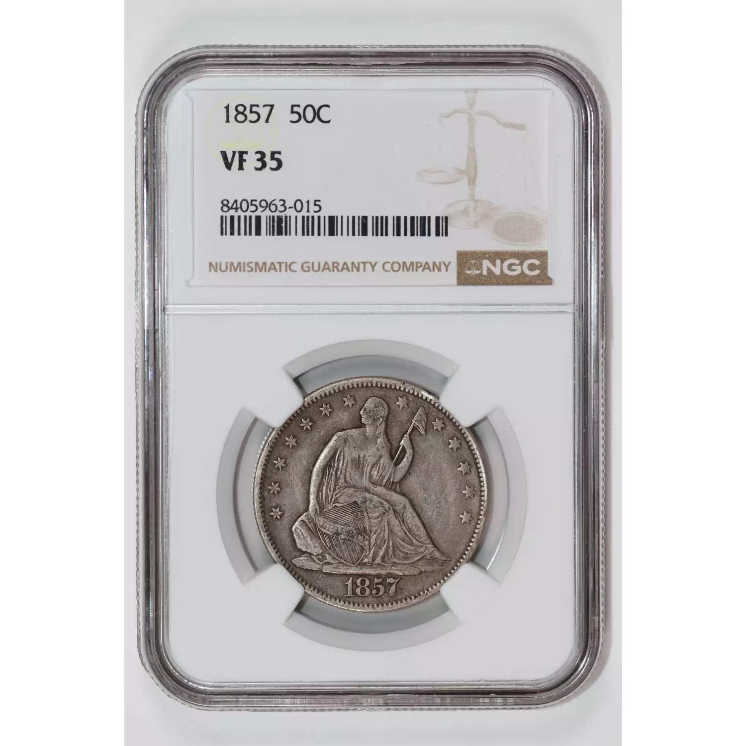 1857 SEATED LIBERTY HALF DOLLAR NGC VF35 - PQ ORIGINAL COIN!