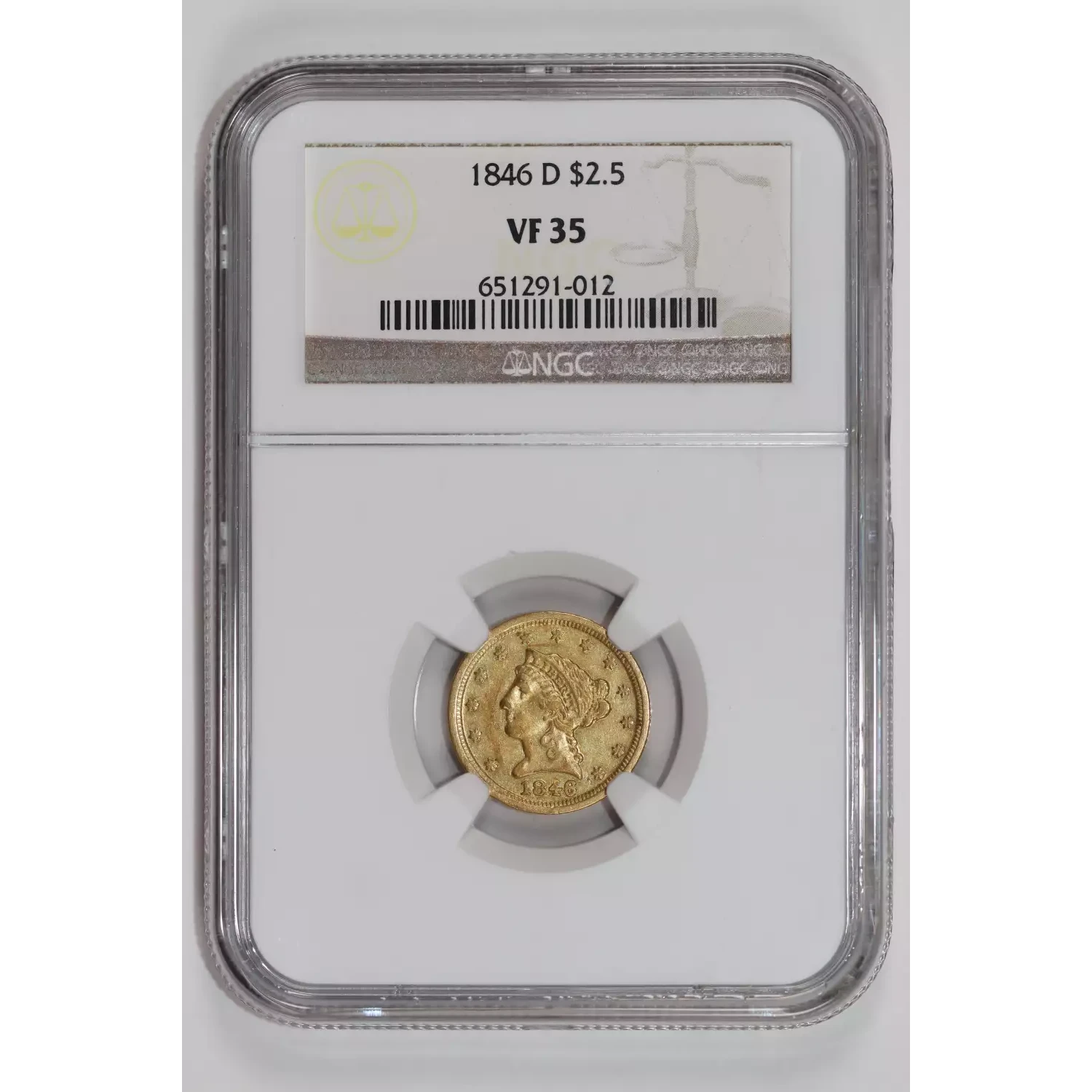 1846-D $2.5 GOLD LIBERTY QUARTER EAGLE NGC VF35 ONLY 19,303 MINTED!