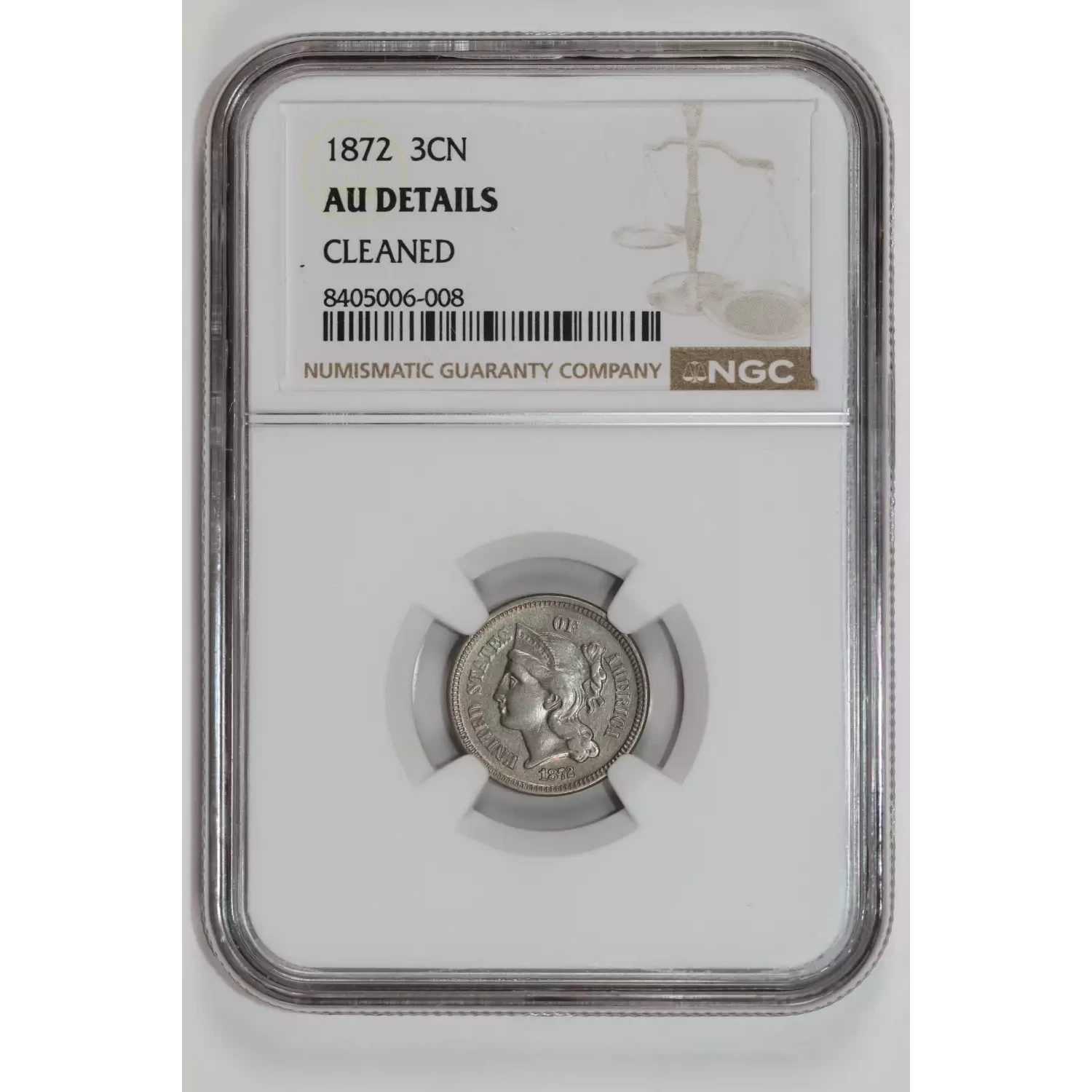 1872 THREE CENT NICKEL NGC AU DETAILS