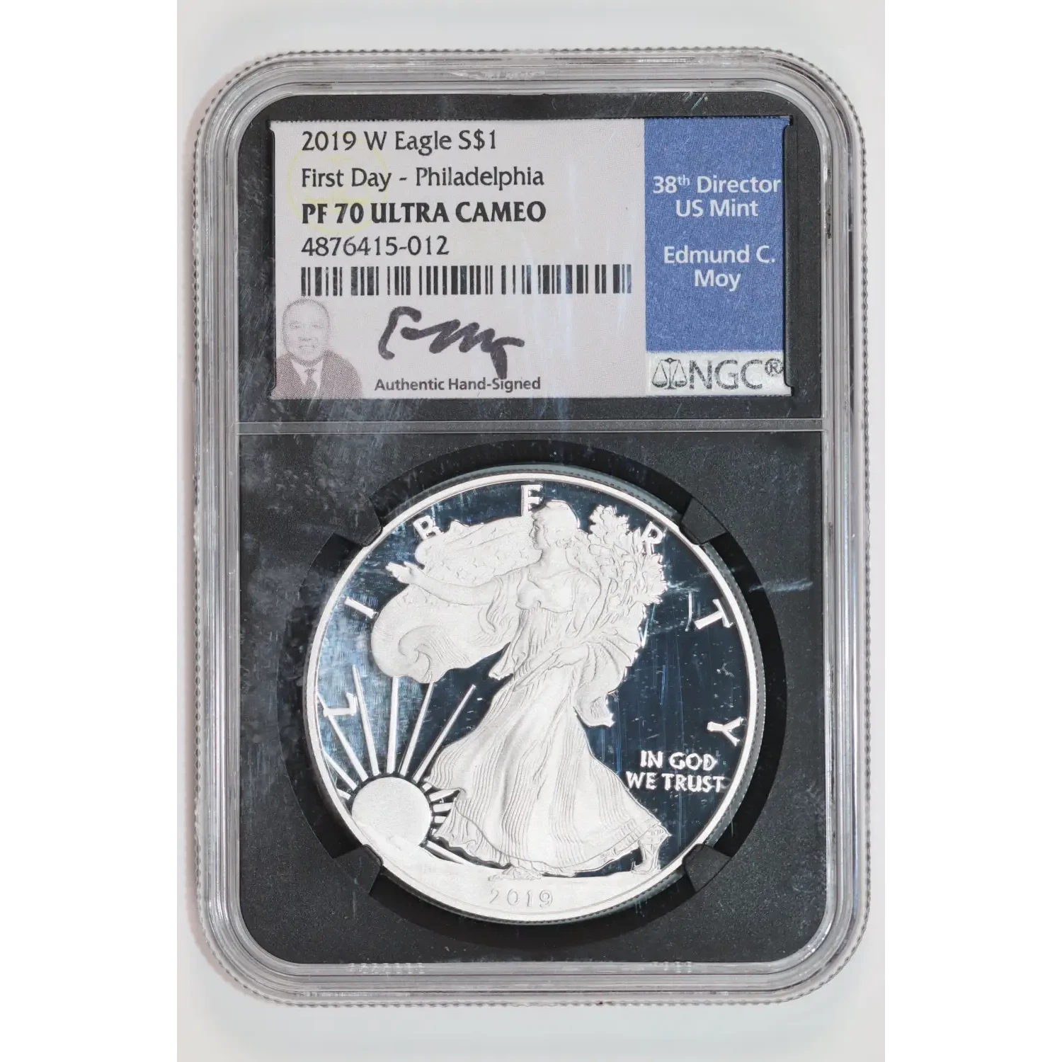 2019-W PROOF SILVER EAGLE FIRST DAY PHILADELPHIA NGC PR70 UCAM MOY