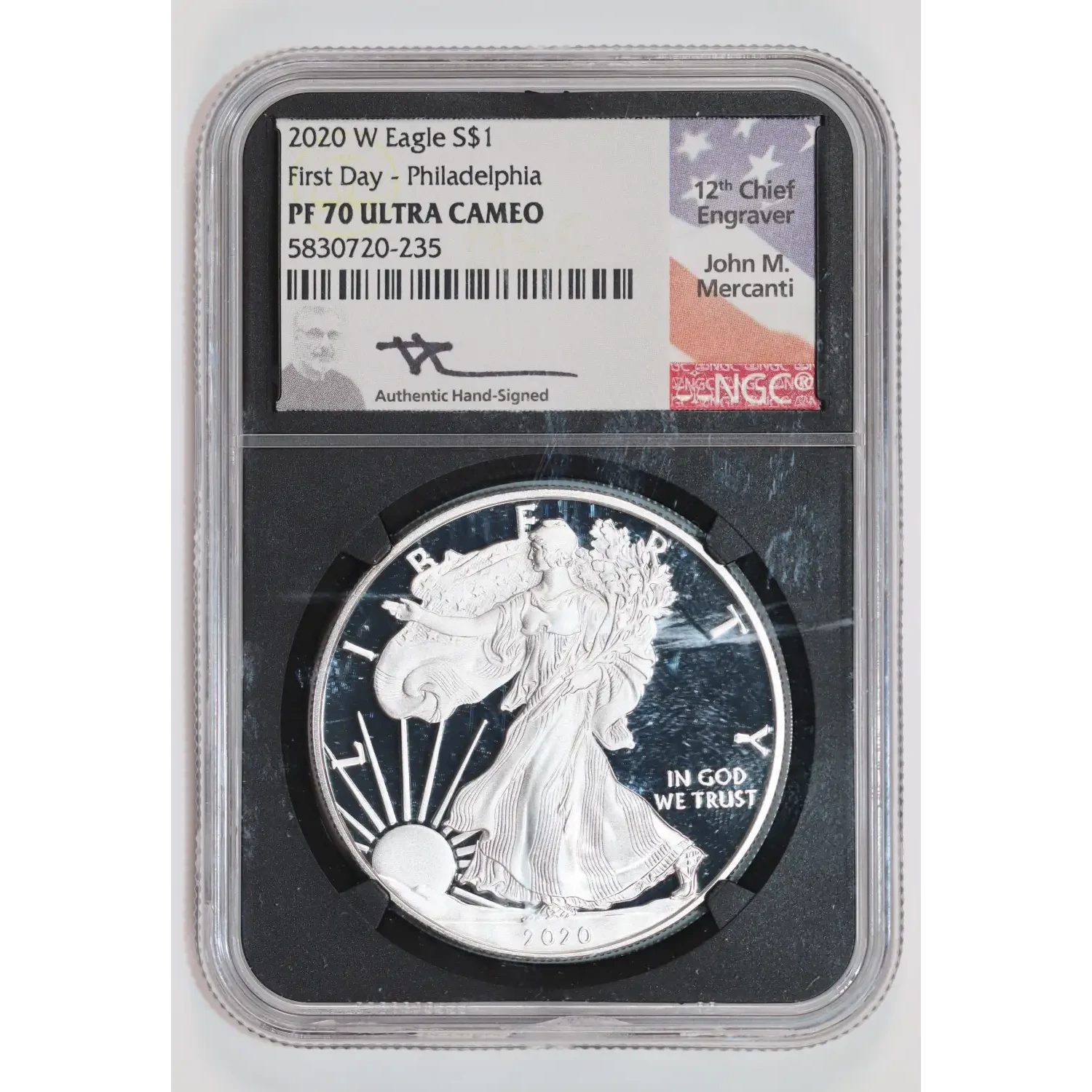 2020-W PROOF SILVER EAGLE FIRST DAY PHILADELPHIA NGC PR70 UCAM JONES