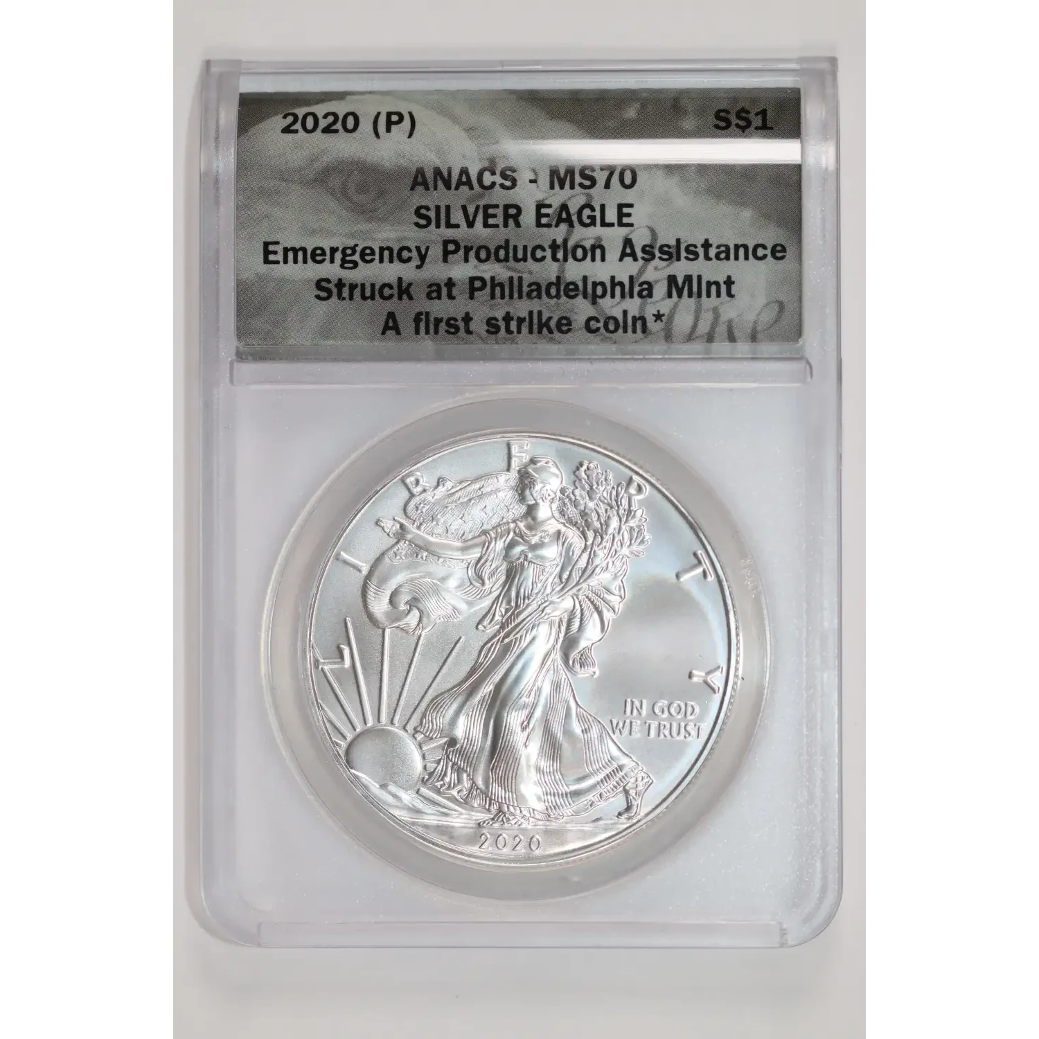 2020 P SILVER EAGLE EMERGENCY PRODCUTION ANACS MS70