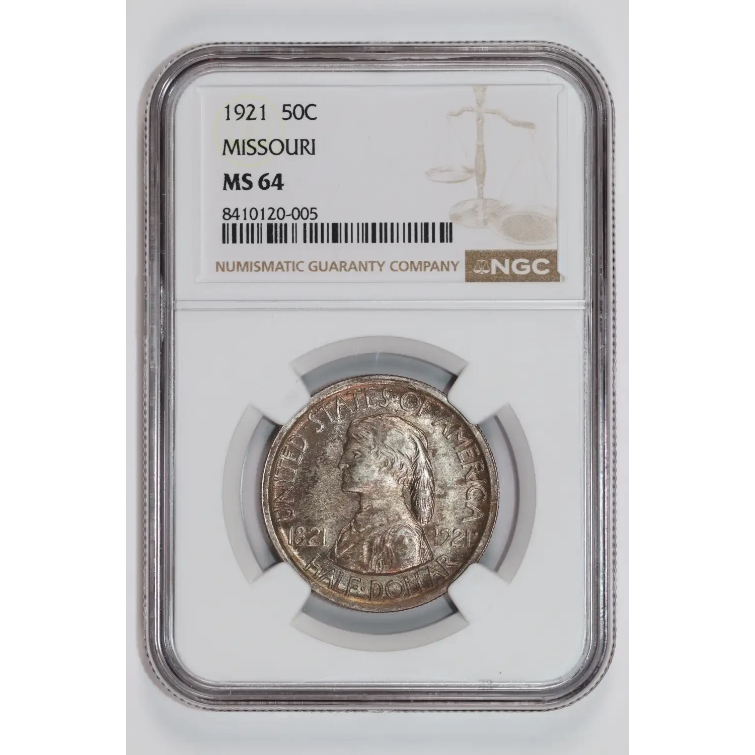 1921 MISSOURI COMMEMORATIVE HALF DOLLAR NGC MS64