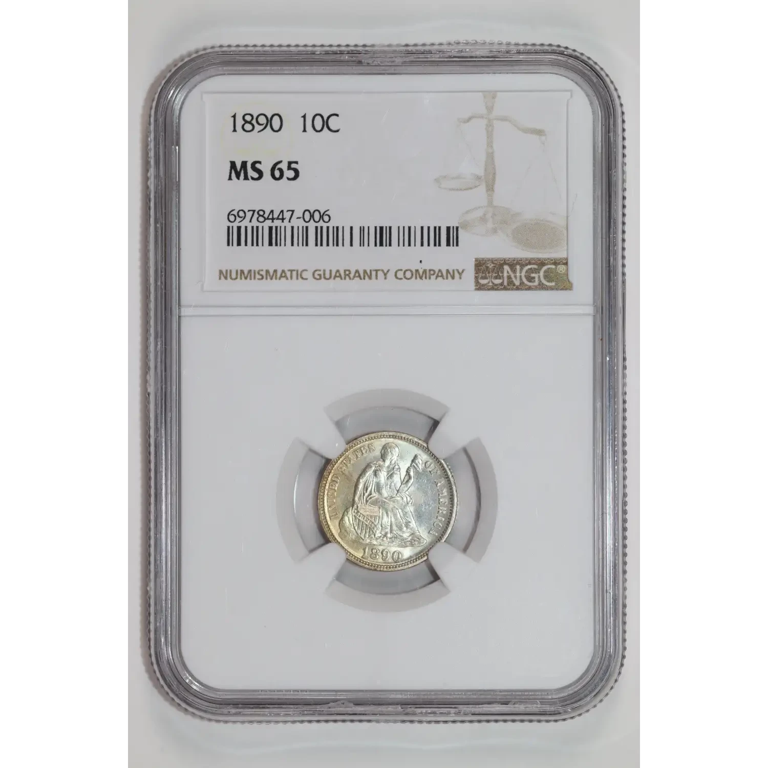 1890 SEATED LIBERTY DIME NGC MS65