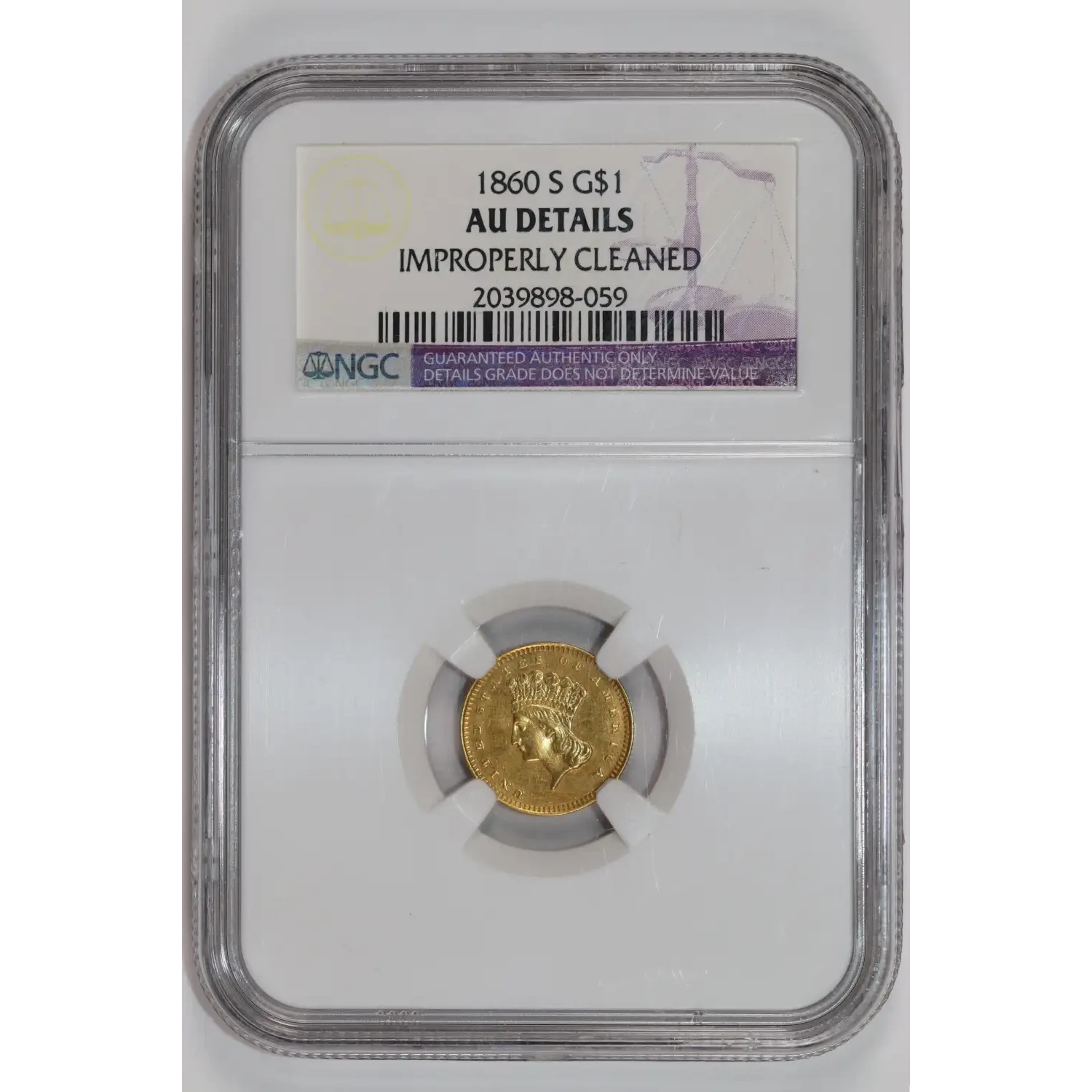 1860-S GOLD DOLLAR NGC AU DETAILS