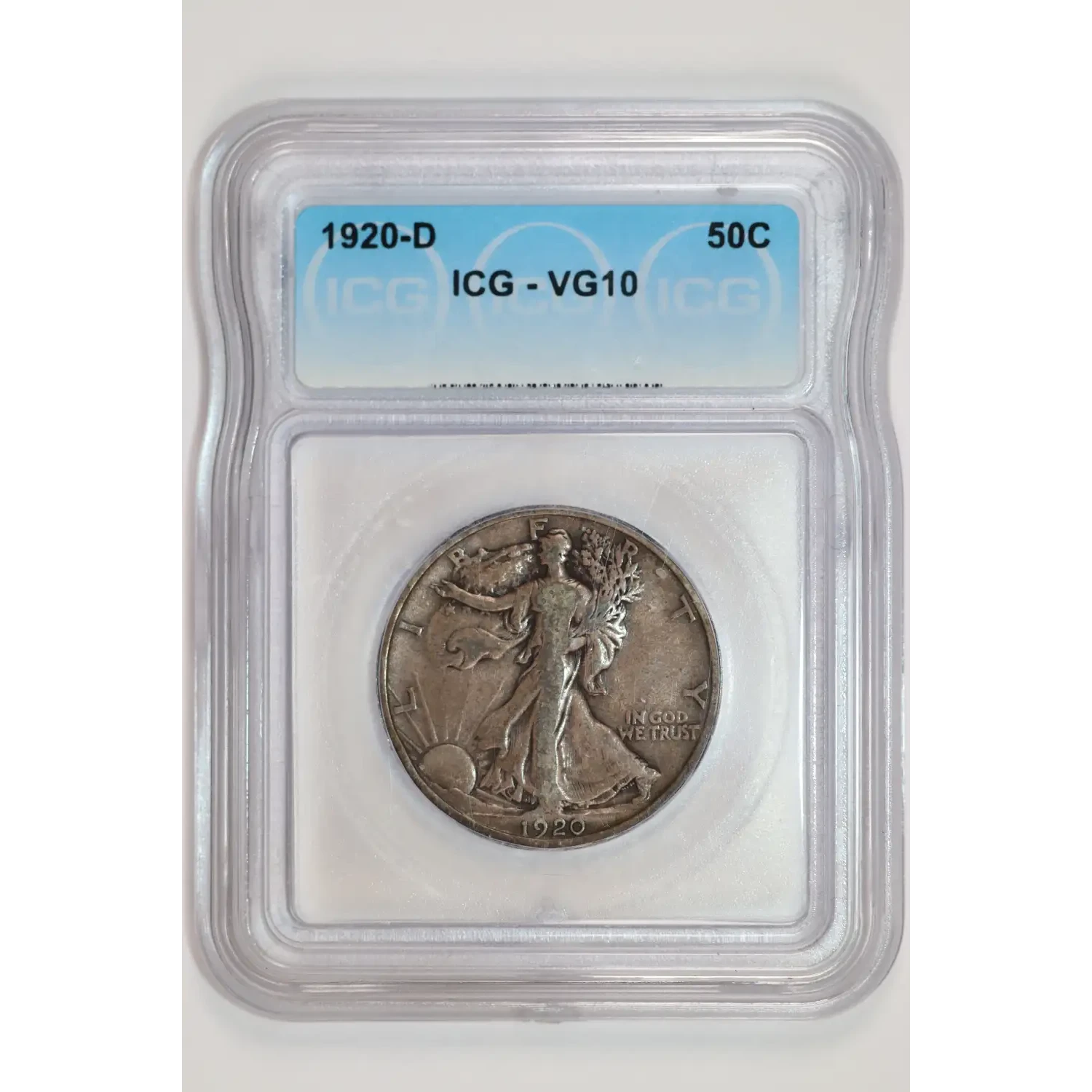 1920-D WALKING LIBERTY HALF DOLLAR ICG VG10