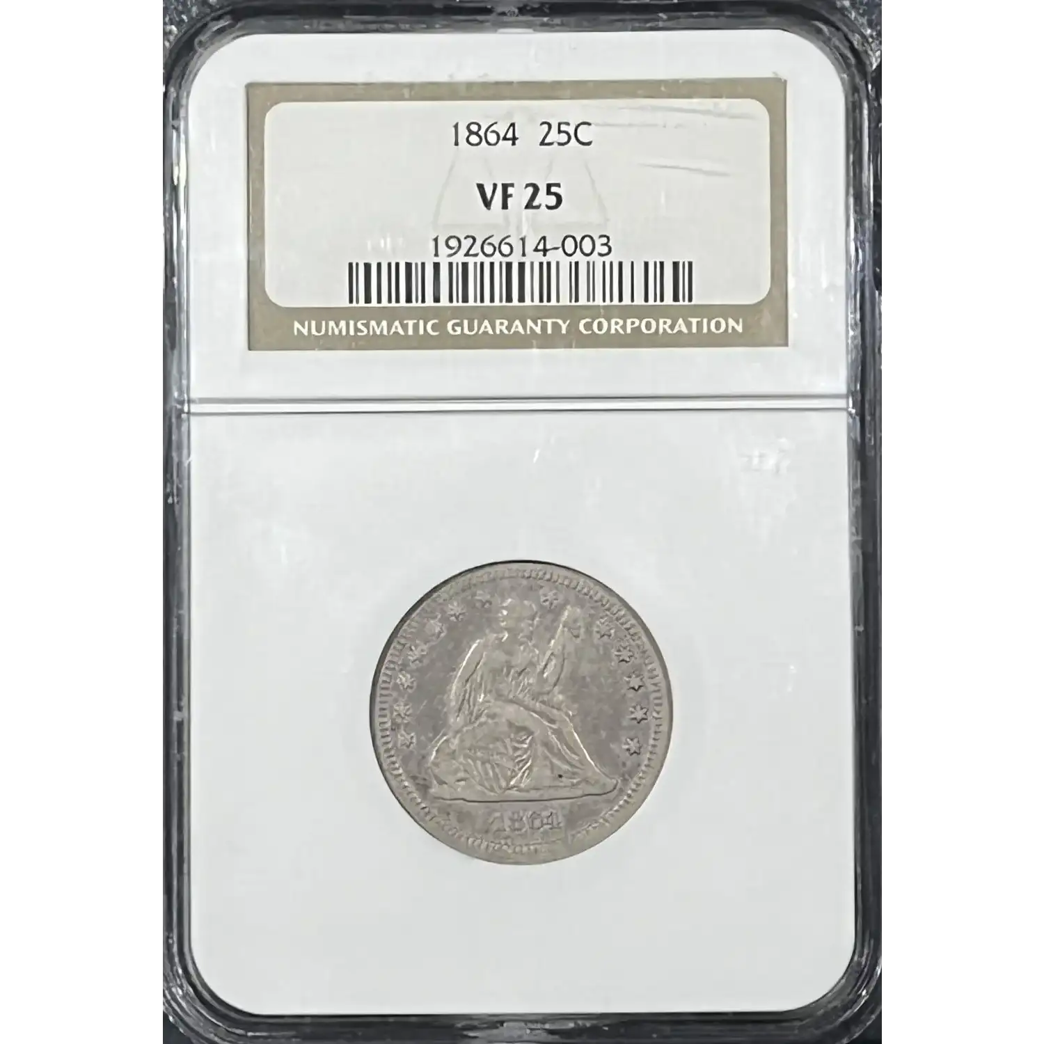 1864 SEATED LIBERTY QUARTER NGC VF25