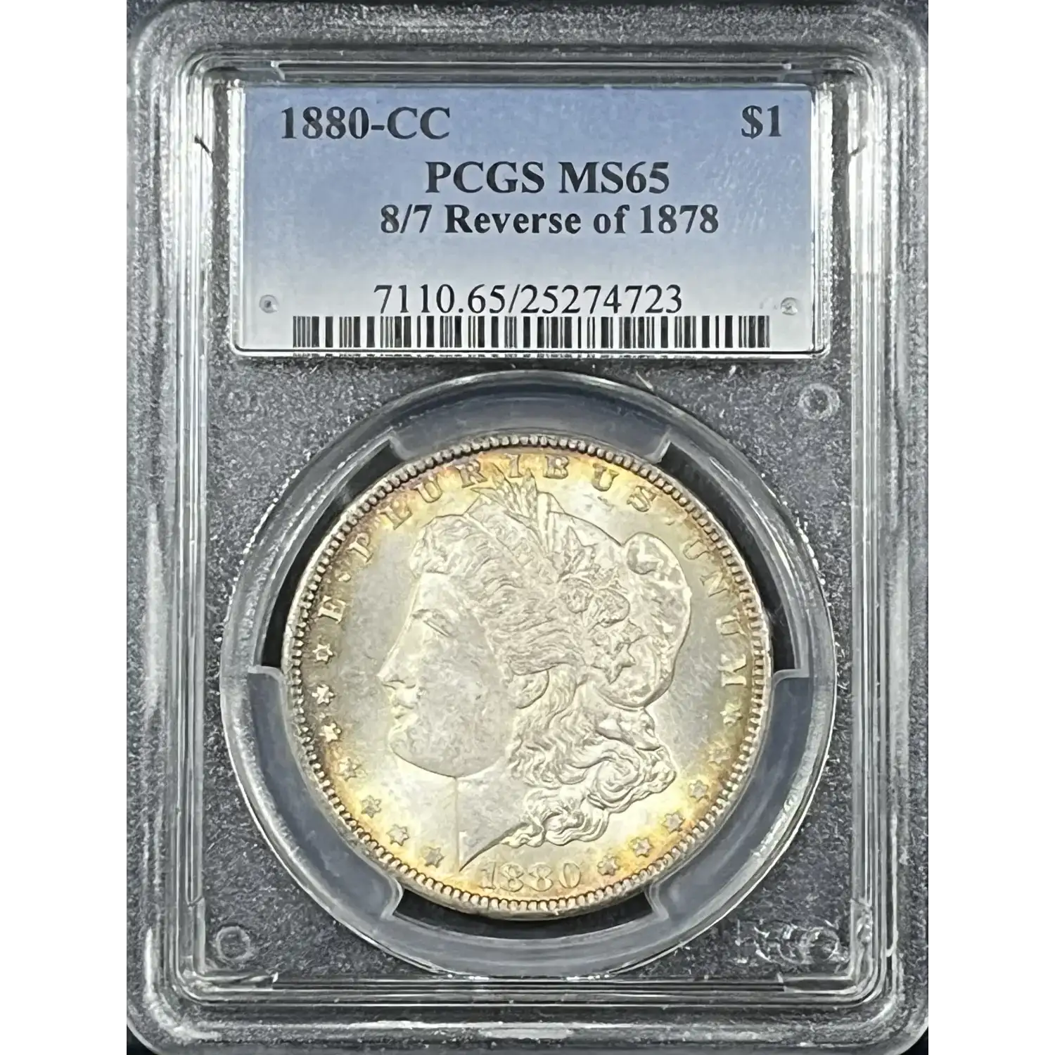 1880-CC 8/7 REVERSE 78 MORGAN DOLLAR PCGS MS65