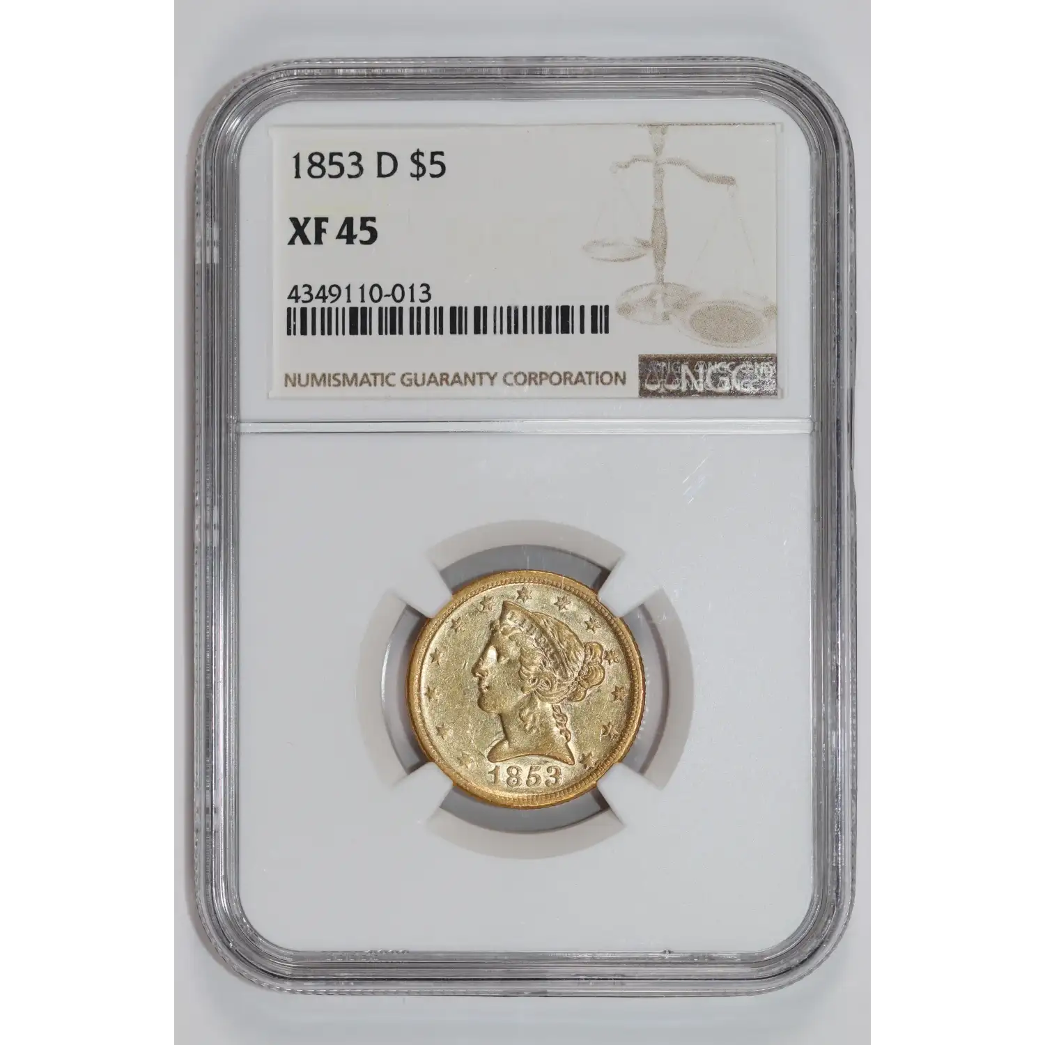 1853-D Gold Half Eagles Liberty Head NGC XF-45