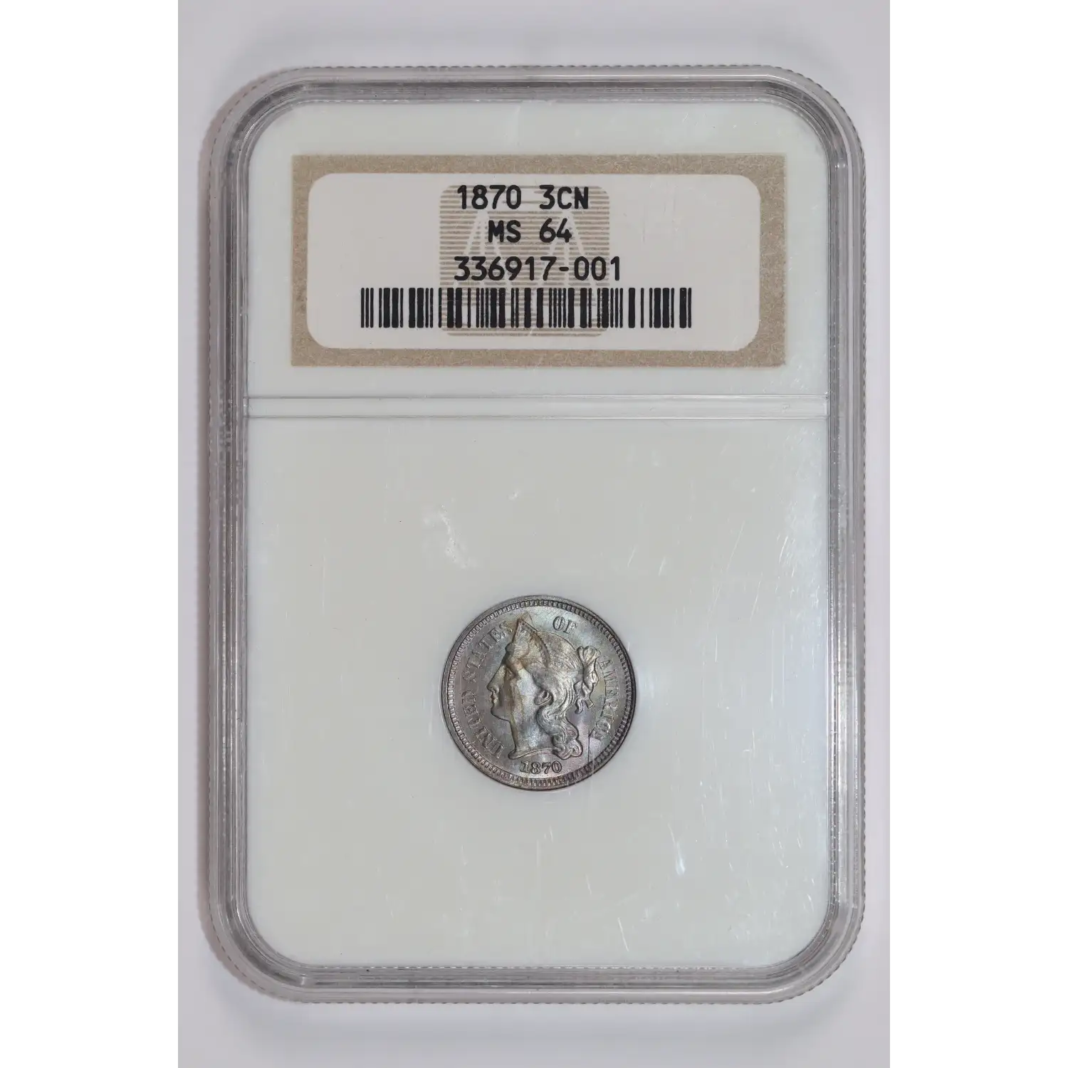 1870 THREE CENT NICKEL NGC MS64 GORGEOUS RAINBOW OBVERSE