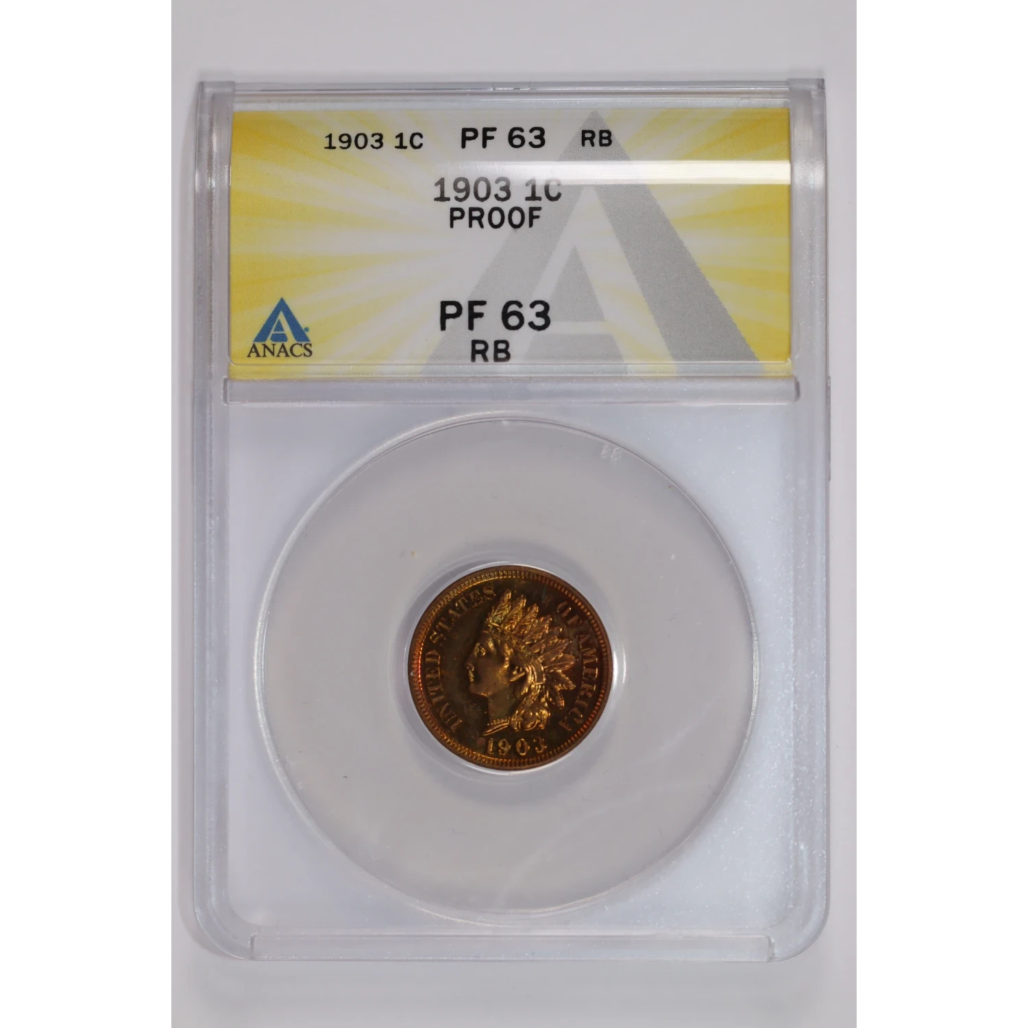 1903 PROOF INDIAN HEAD CENT ANACS PR63 RB - LOOKS RED!