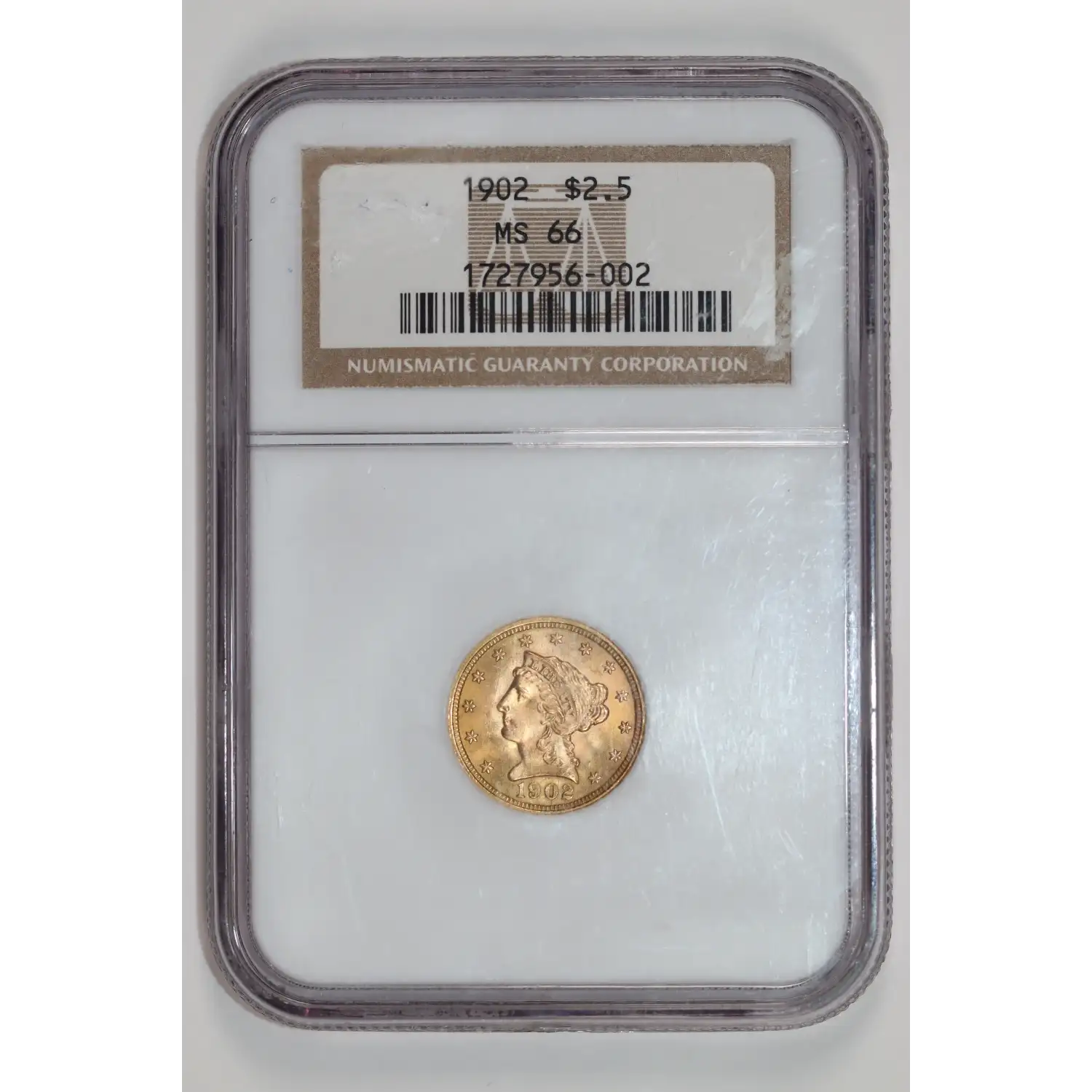 1902 $2.5 GOLD LIBERTY QUARTER EAGLE NGC MS66
