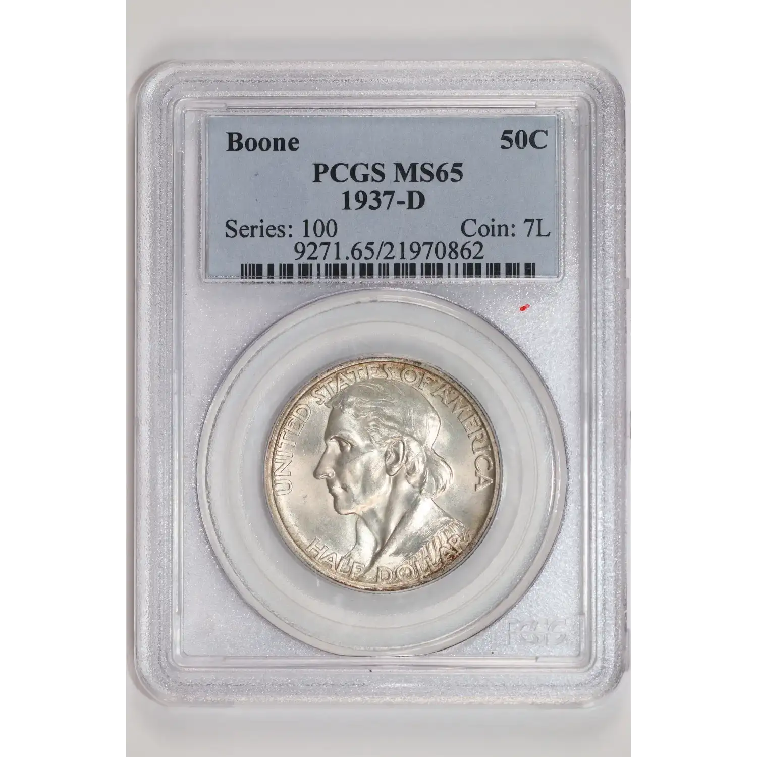 1937-D BOONE COMMEMORATIVE HALF DOLLAR PCGS MS65