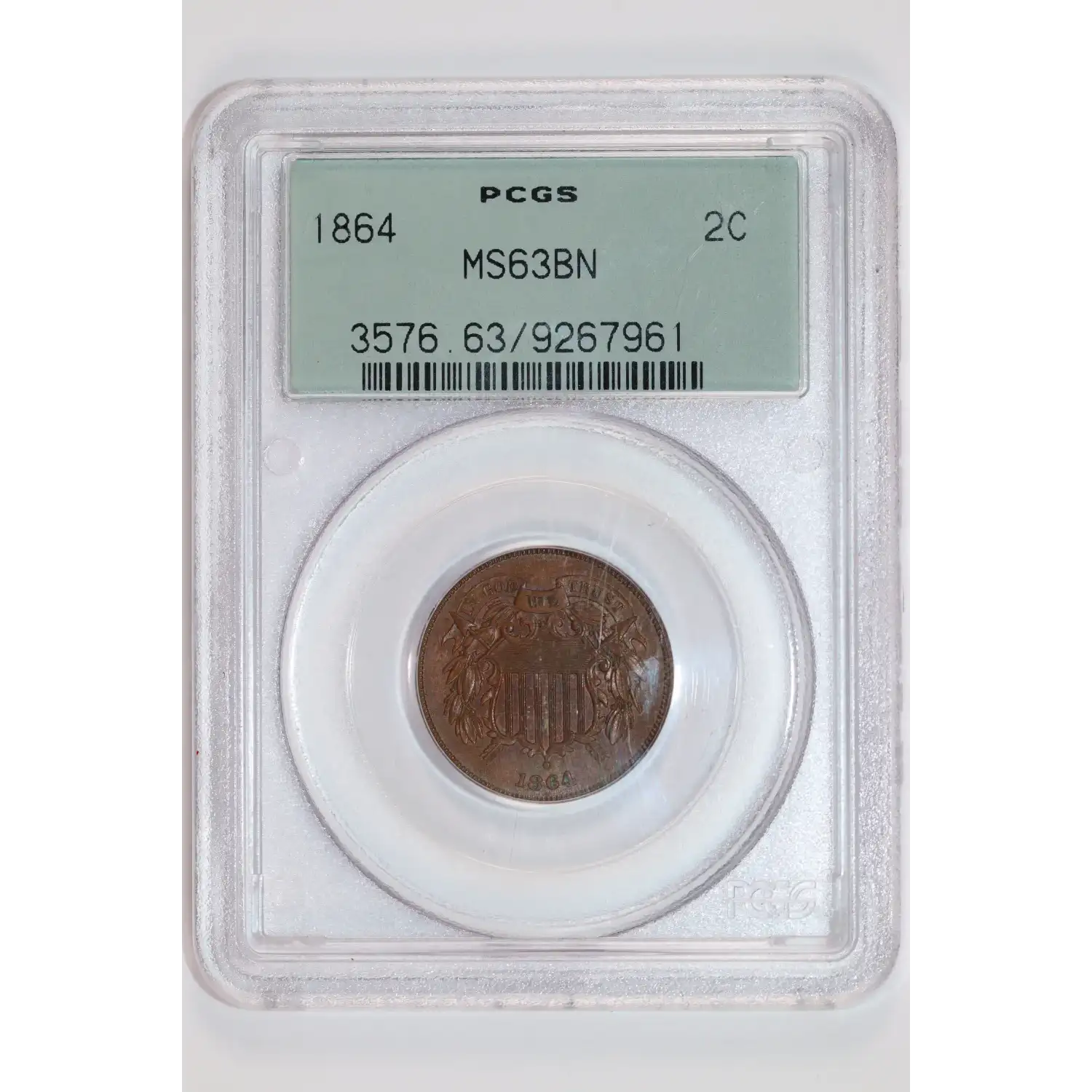 1864 TWO CENT PIECE PCGS MS63 BN OGH VERY PQ!