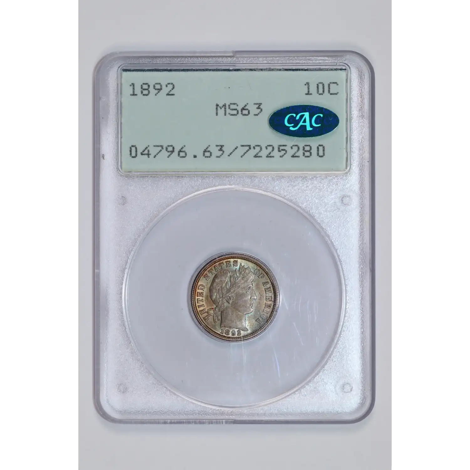 1892 Dimes Barber or Liberty Head PCGS MS-63 CAC