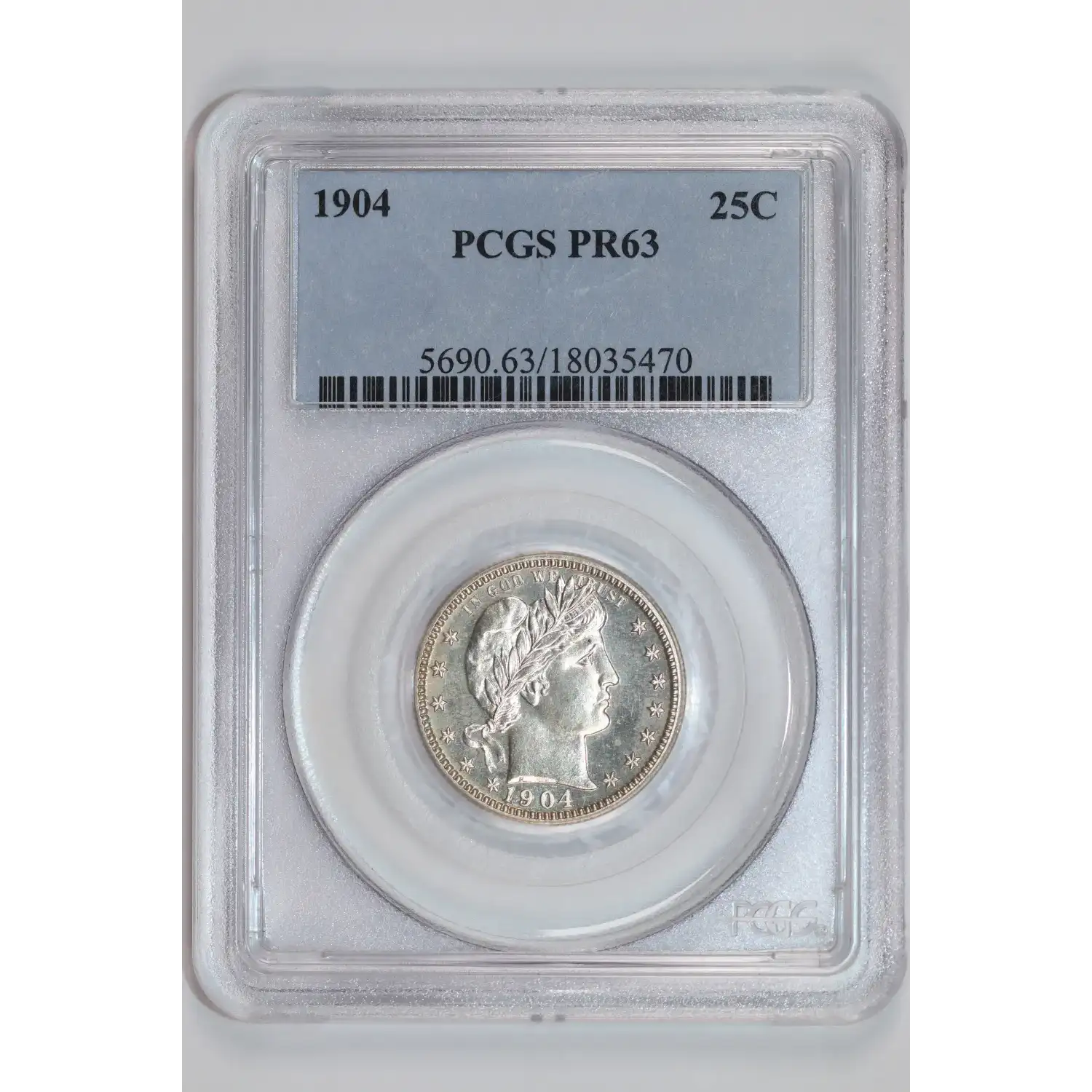 1904 Quarter Dollars Barber or Liberty Head PCGS PR-63