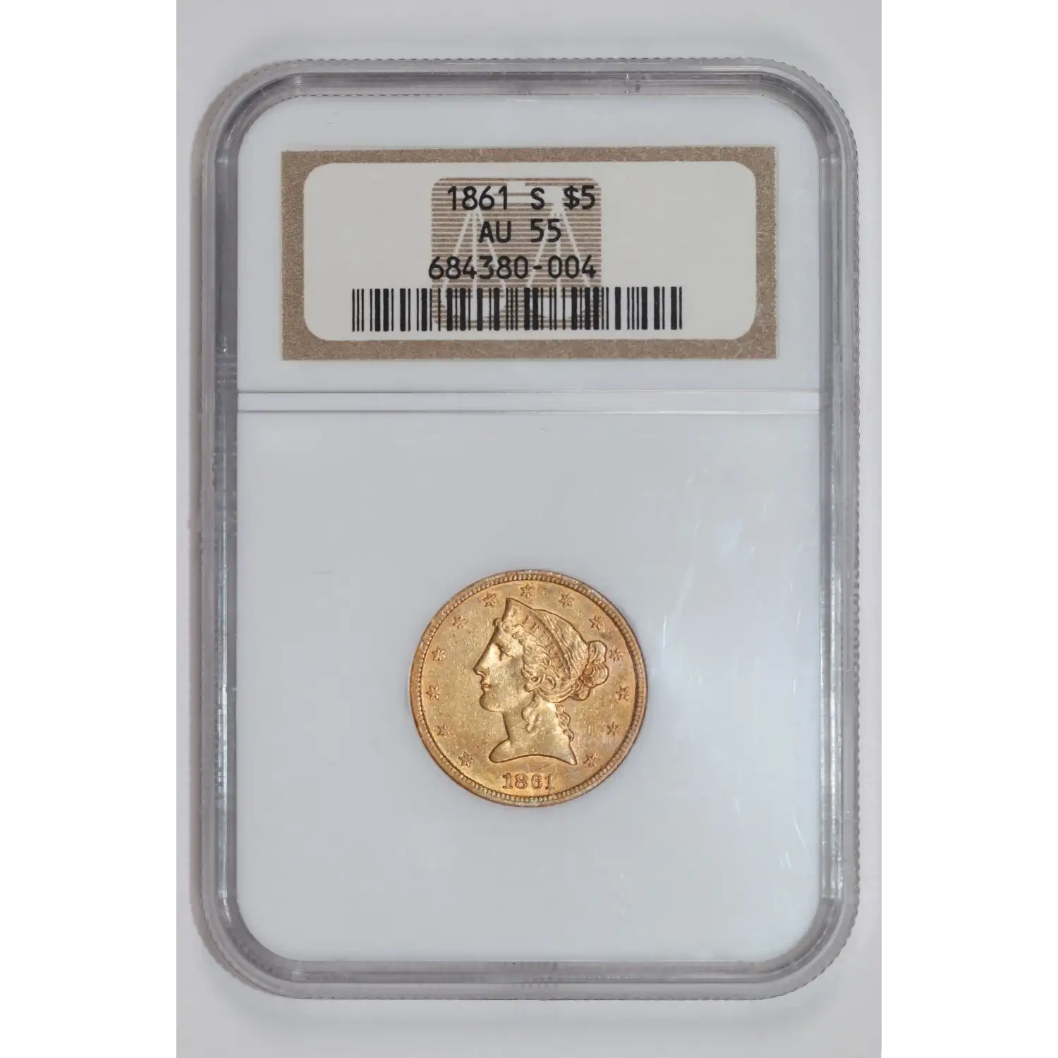 1861-S $5 GOLD LIBERTY HALF EAGLE NGC AU55 - VERY RARE!