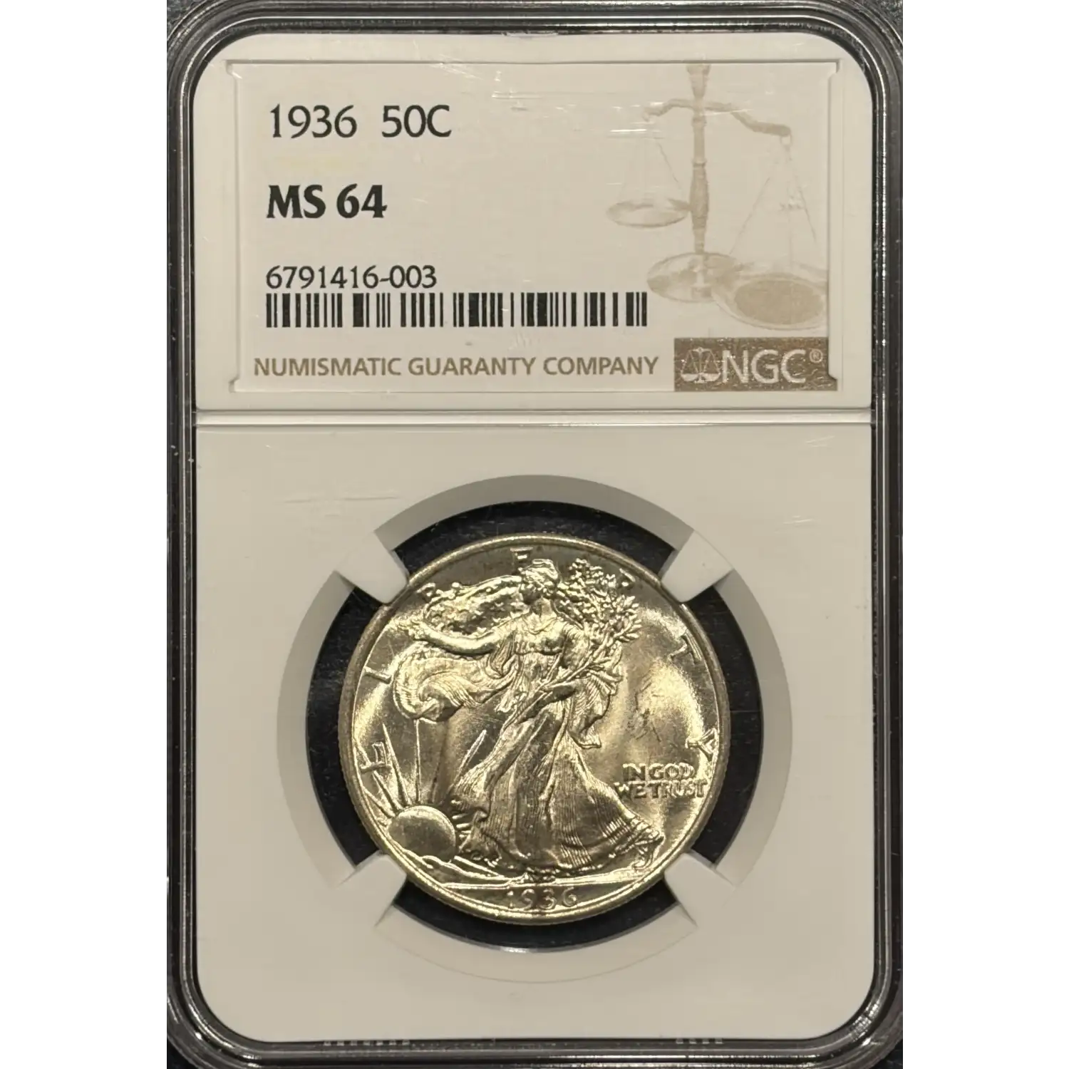1936 WALKING LIBERTY HALF DOLLAR NGC MS64