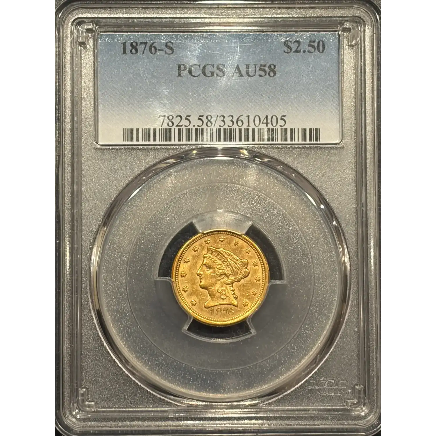 1876-S $2.5 GOLD LIBERTY QUARTER EAGLE PCGS AU58