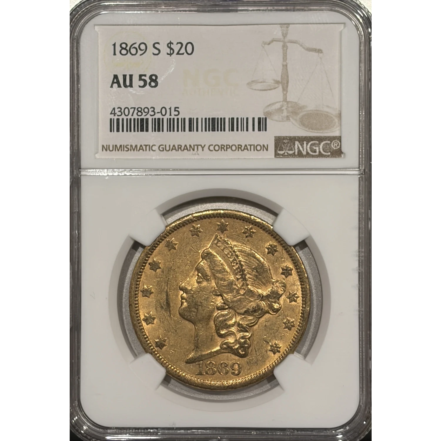 1869-S DOUBLE EAGLE NGC AU58