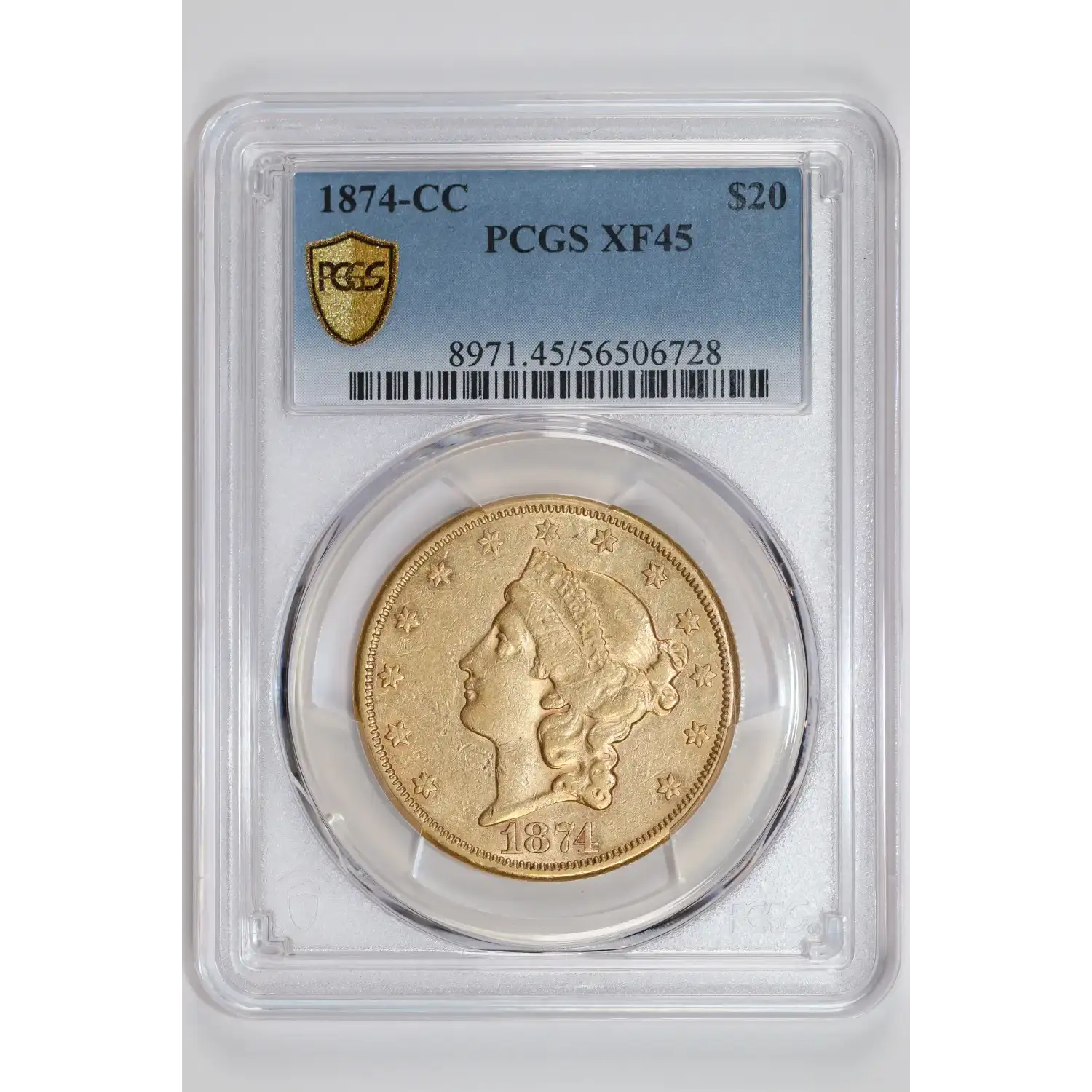 1874-CC $20 GOLD LIBERTY DOUBLE EAGLE PCGS XF45