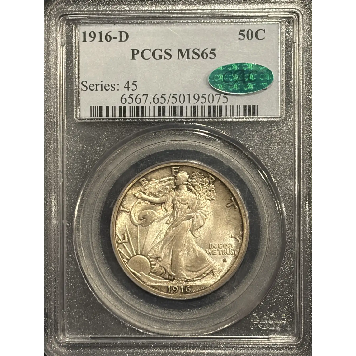 1916-D WALKING LIBERTY HALF DOLLAR PCGS MS65 CAC