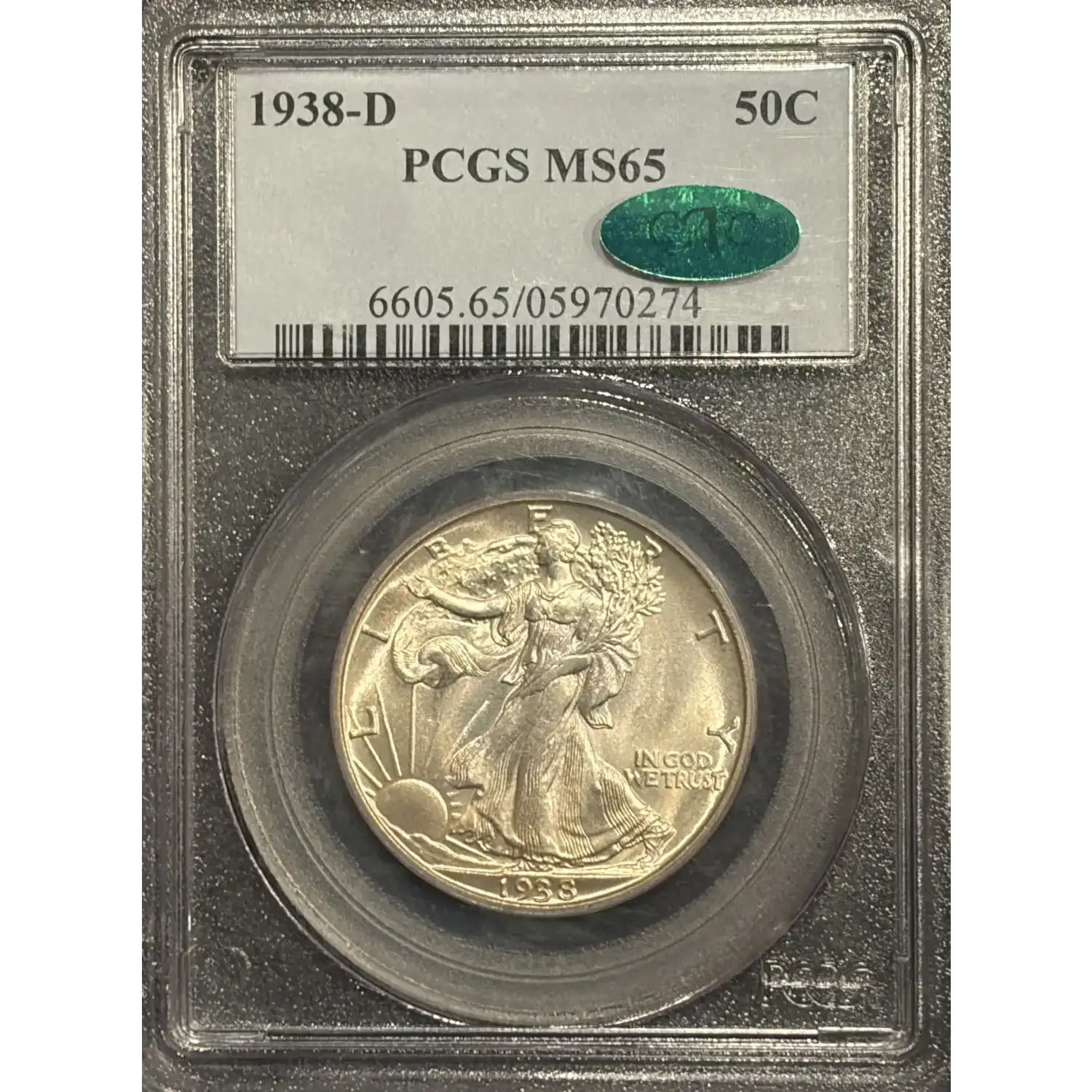 1938-D WALKING LIBERTY HALF DOLLAR PCGS MS65 CAC