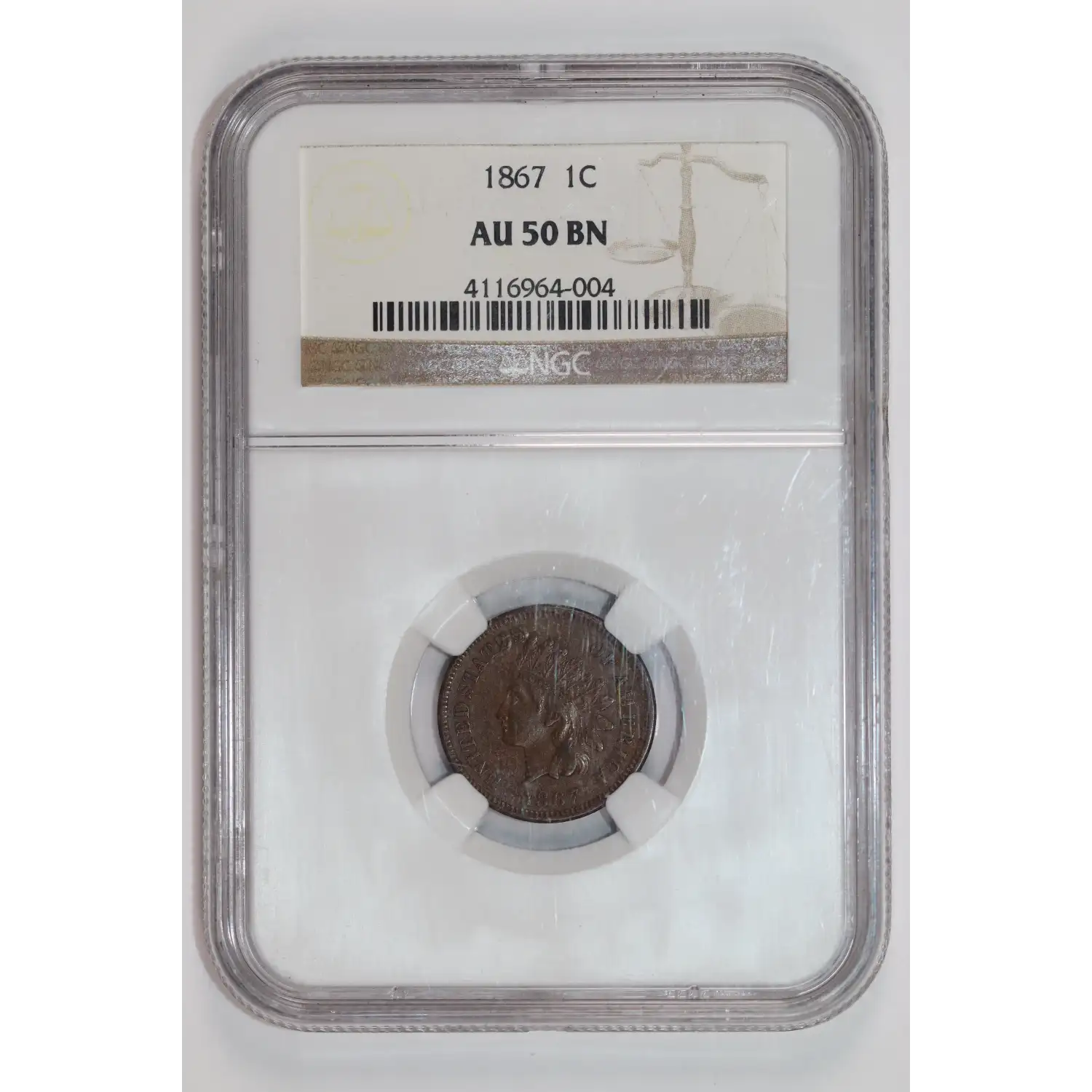 1867 INDIAN HEAD CENT NGC AU50 BN