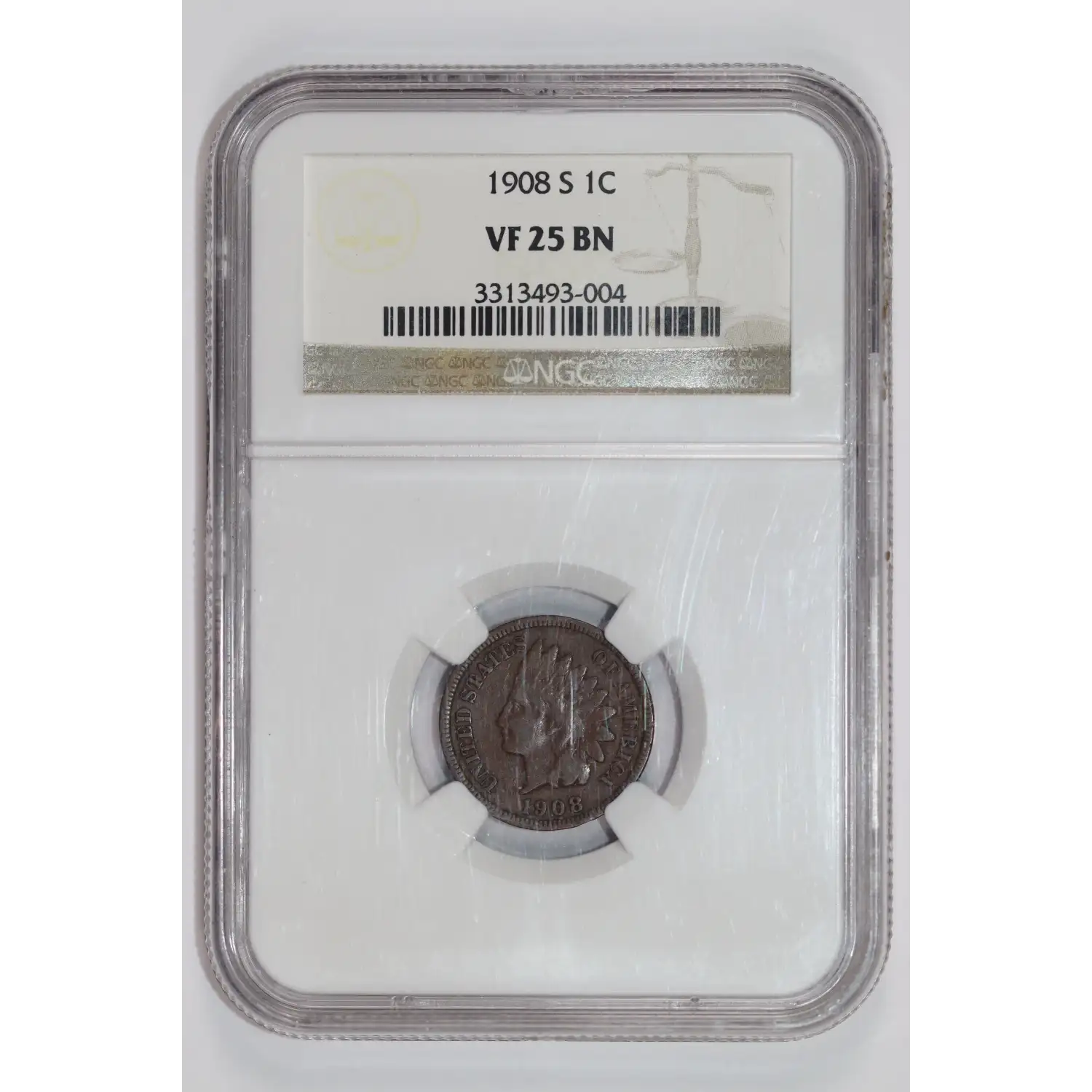 1908-S INDIAN HEAD CENT NGC VF25 BN