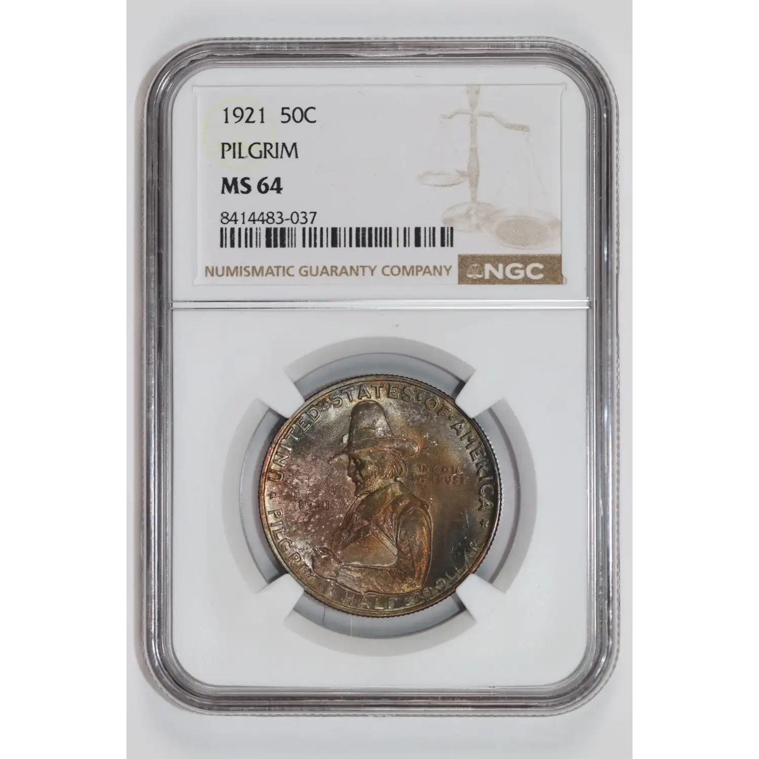 1921 PILGRIM COMMEMORATIVE HALF DOLLAR NGC MS64 PRETTY COLOR!