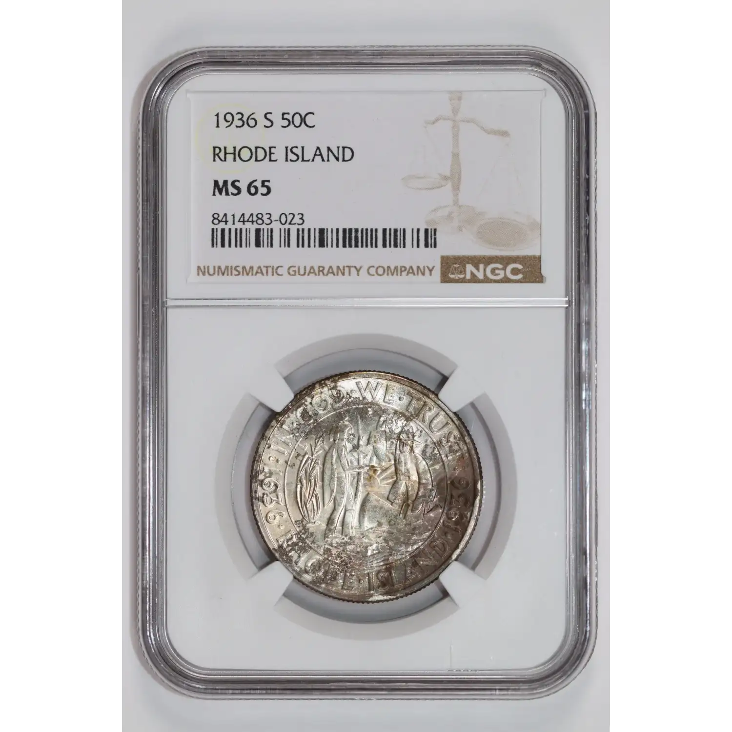 1936-S RHODE ISLAND COMMEMORATIVE HALF DOLLAR NGC MS65 FRESH PQ!