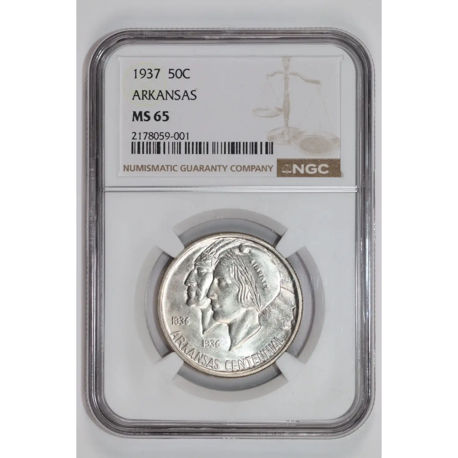 1937 ARKANSAS COMMEMORATIVE HALF DOLLAR NGC MS65