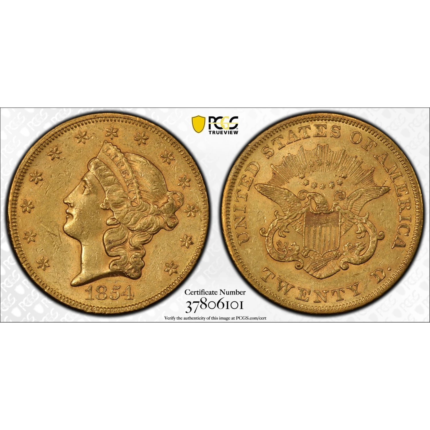 1854 SMALL DATE $20 GOLD LIBERTY DOUBLE EAGLE PCGS AU55