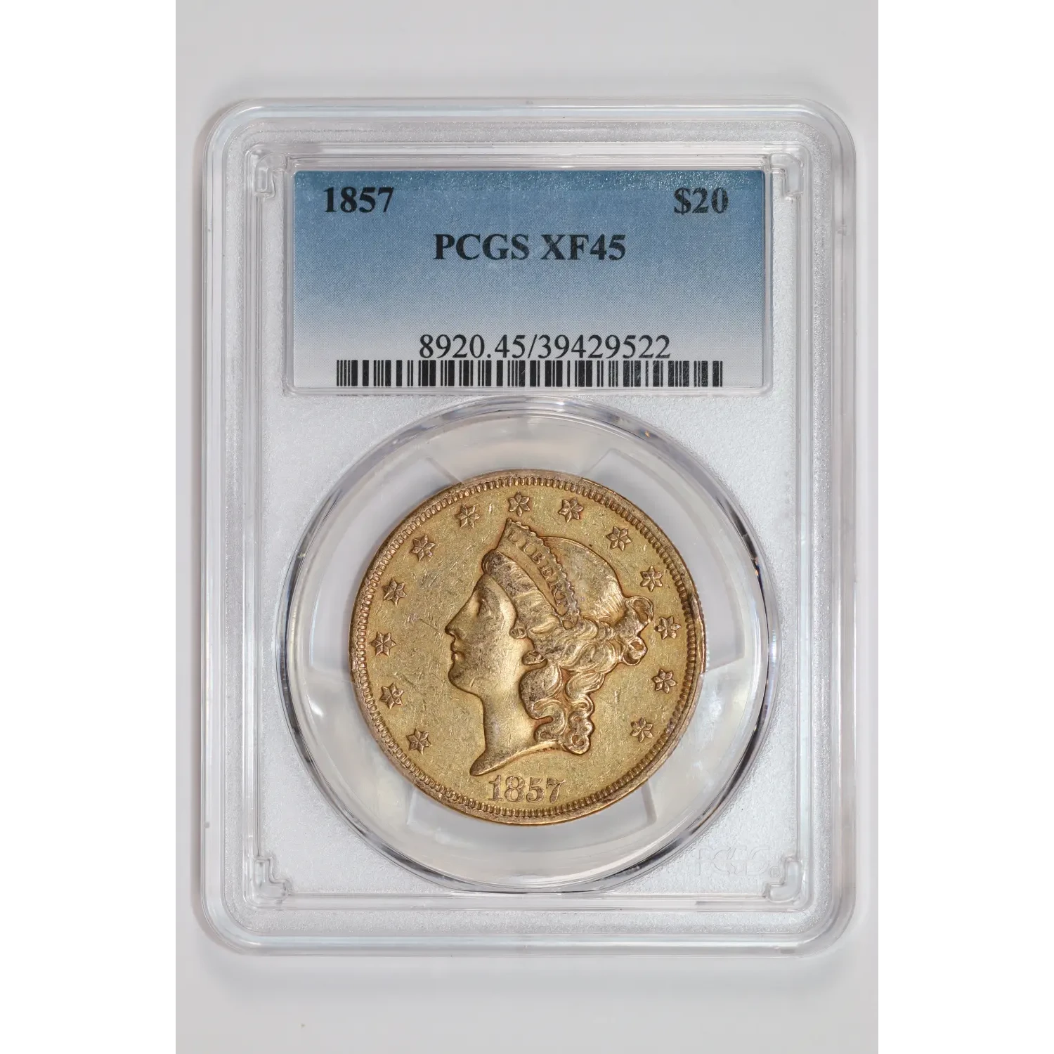 1857 $20 GOLD LIBERTY DOUBLE EAGLE PCGS XF45