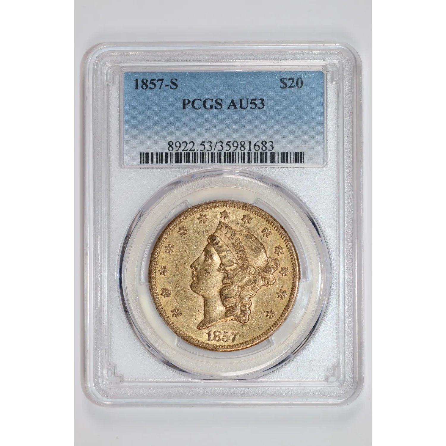 1857-S $20 GOLD LIBERTY DOUBLE EAGLE PCGS AU53