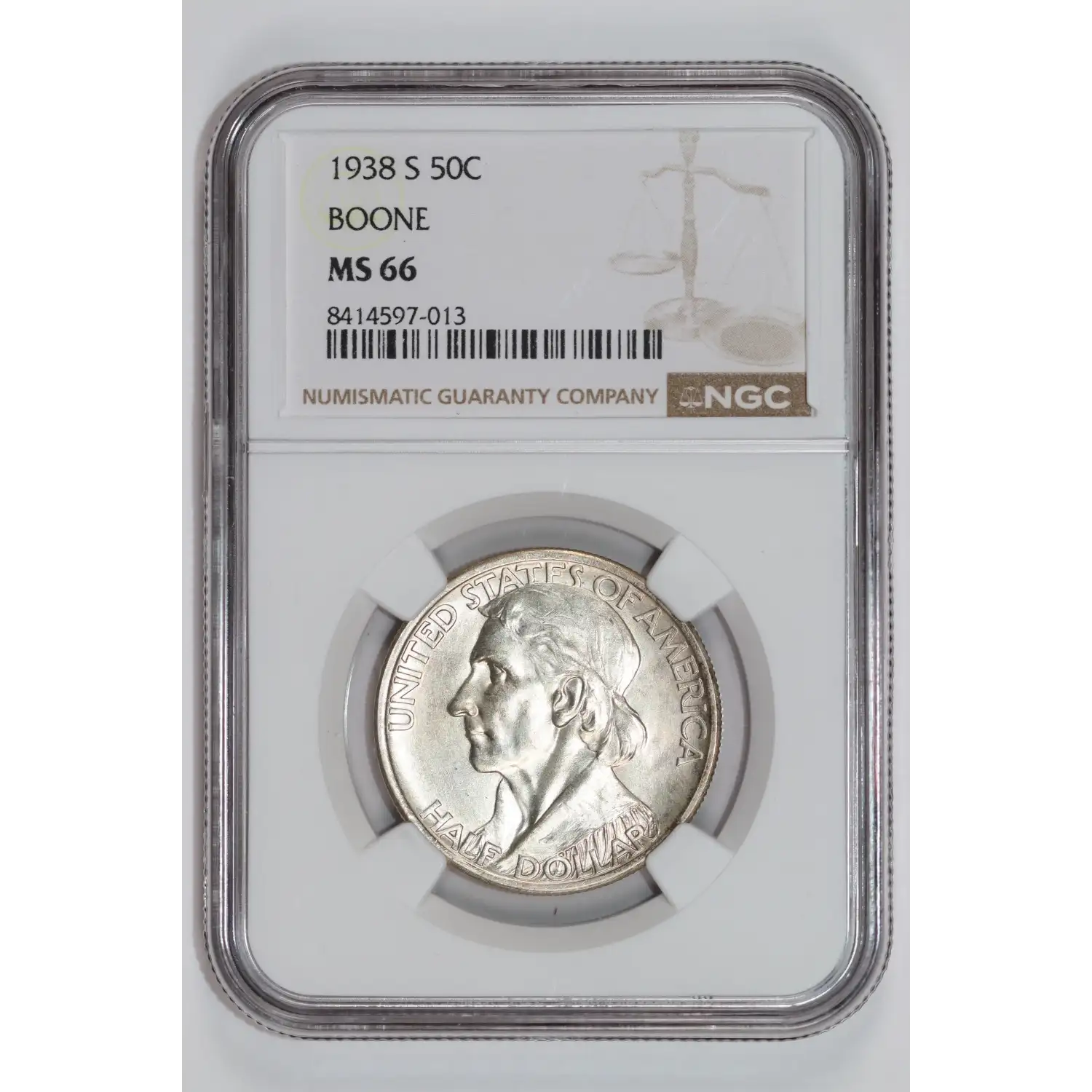 1938-S BOONE COMMEMORATIVE HALF DOLLAR NGC MS66
