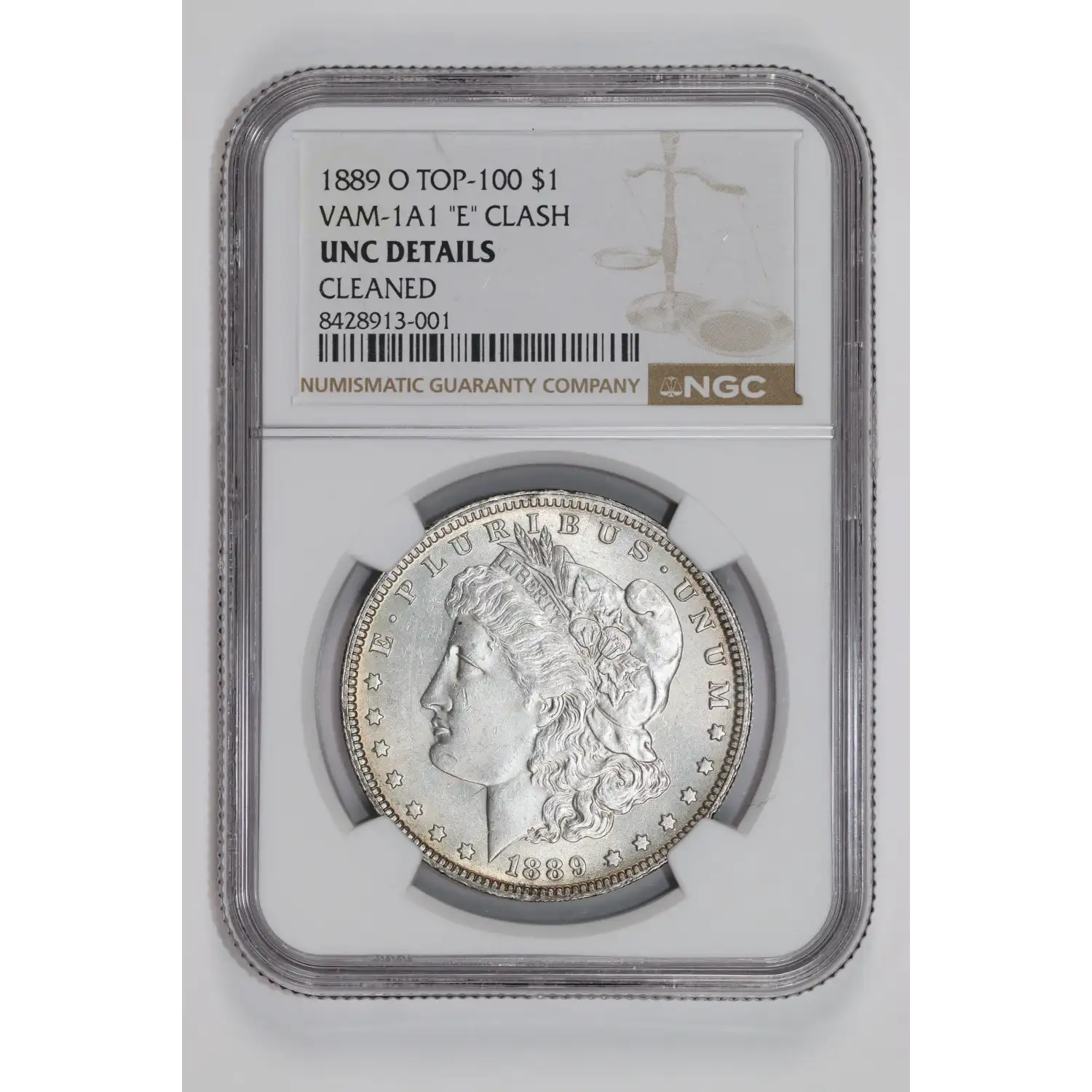 1889-O VAM-1A1 "E CLASH" MORGAN DOLLAR NGC UNC DETAILS