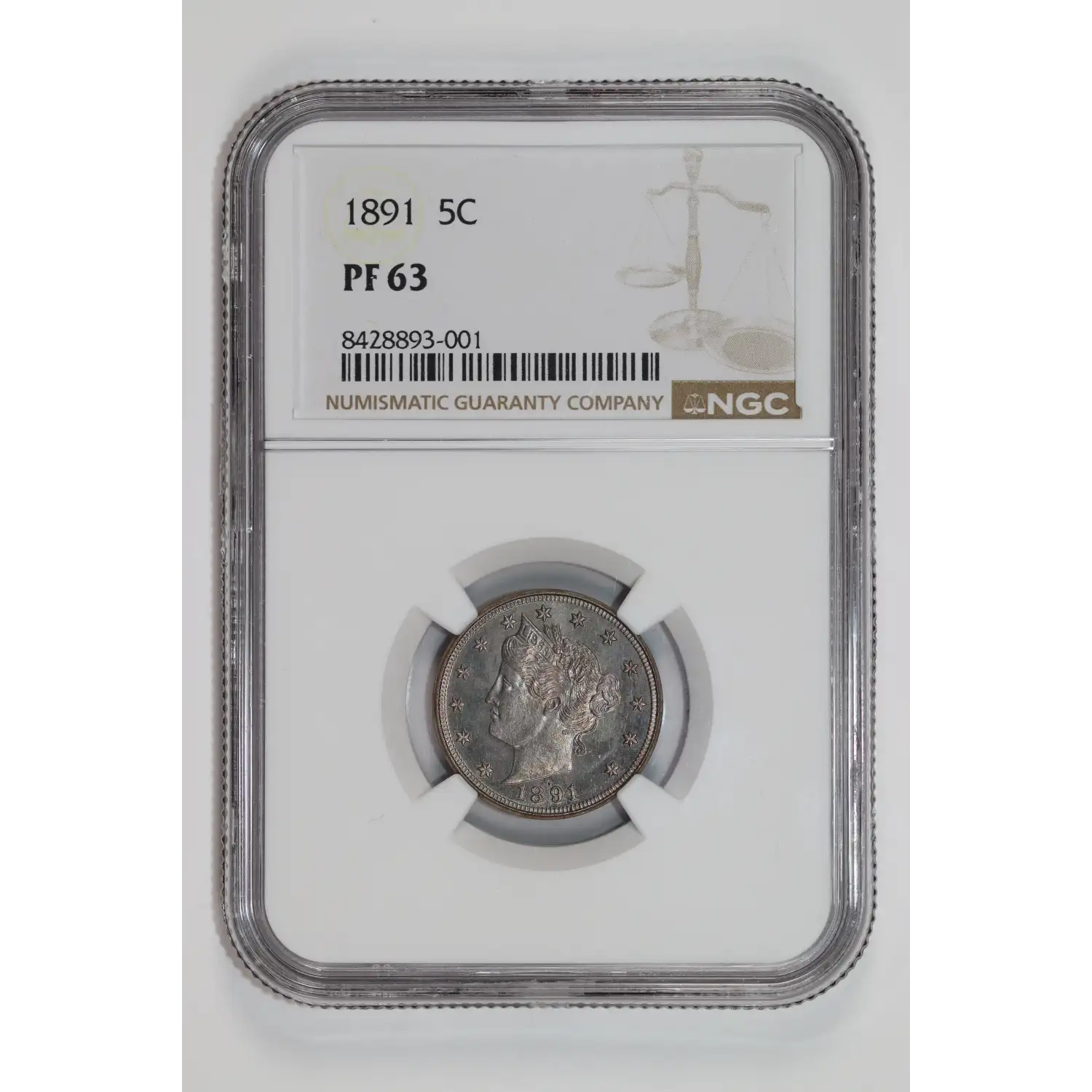 1891 PROOF LIBERTY V NICKEL NGC PR63