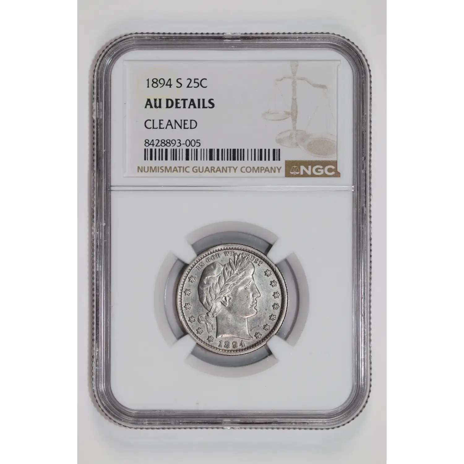 1894-S BARBER QUARTER NGC AU DETAILS