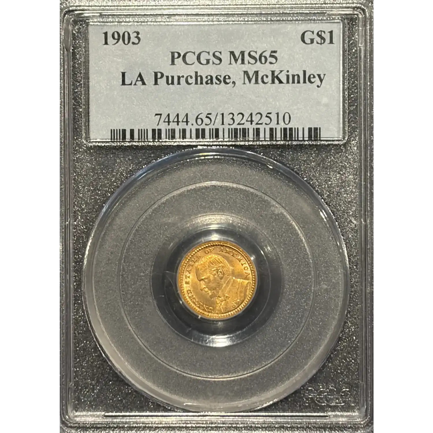1903 LA PURCHASE MCKINLEY GOLD COMMEMORATIVE DOLLAR PCGS MS65