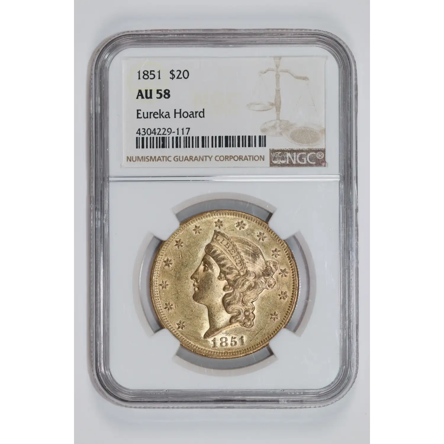 1851 $20 GOLD LIBERTY DOUBLE EAGLE NGC AU58 EUREKA HOARD