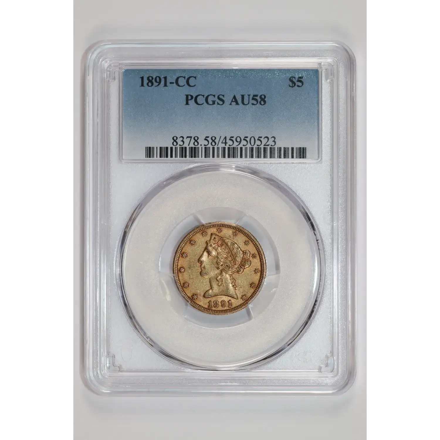 1891-CC $5 GOLD LIBERTY HALF EAGLE PCGS AU58