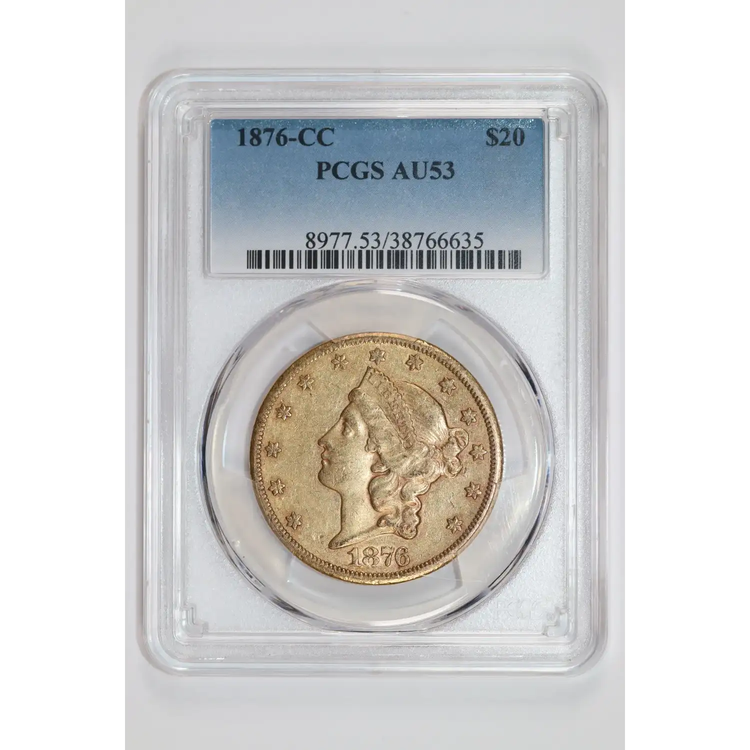 1876-CC $20 GOLD LIBERTY DOUBLE EAGLE PCGS AU53