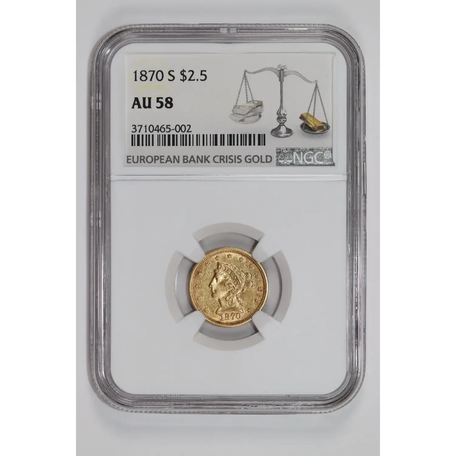 1870-S $2.5 GOLD LIBERTY QUARTER EAGLE NGC AU58