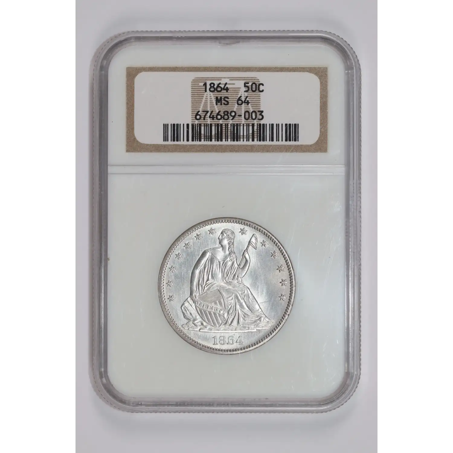 1864 SEATED LIBERTY HALF DOLLAR NGC MS64 GORGEOUS WHITE COIN!