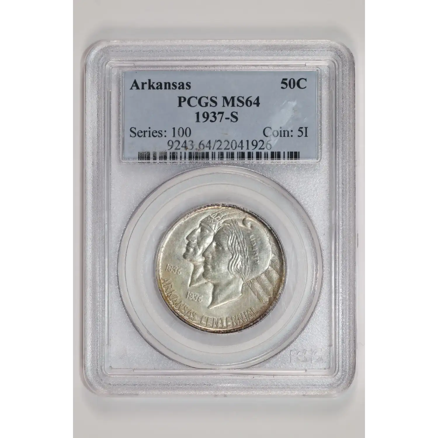 1937-S Classic Commemorative Arkansas Centennial PCGS MS-64 Arkansas