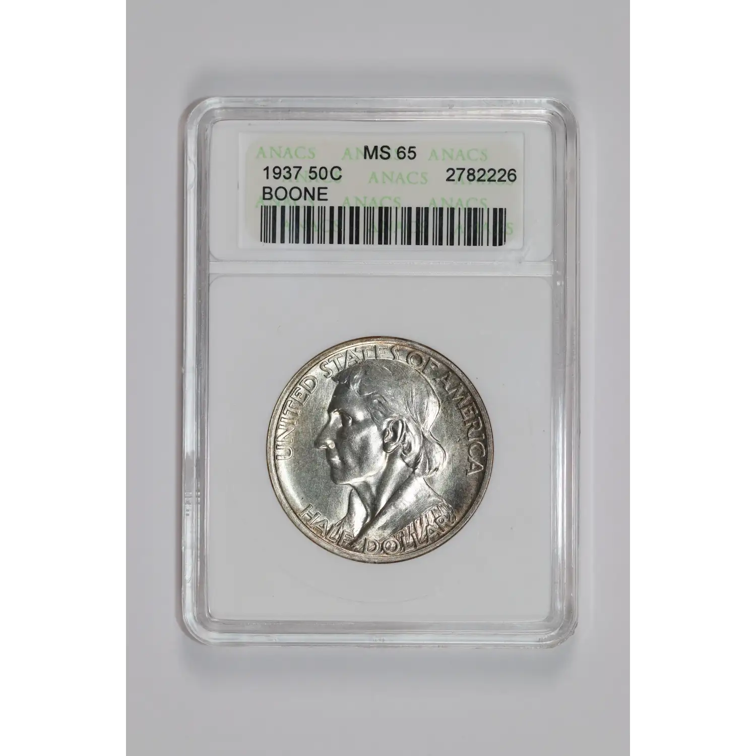 1937 BOONE COMMEMORATIVE HALF DOLLAR ANACS MS65 PQ!