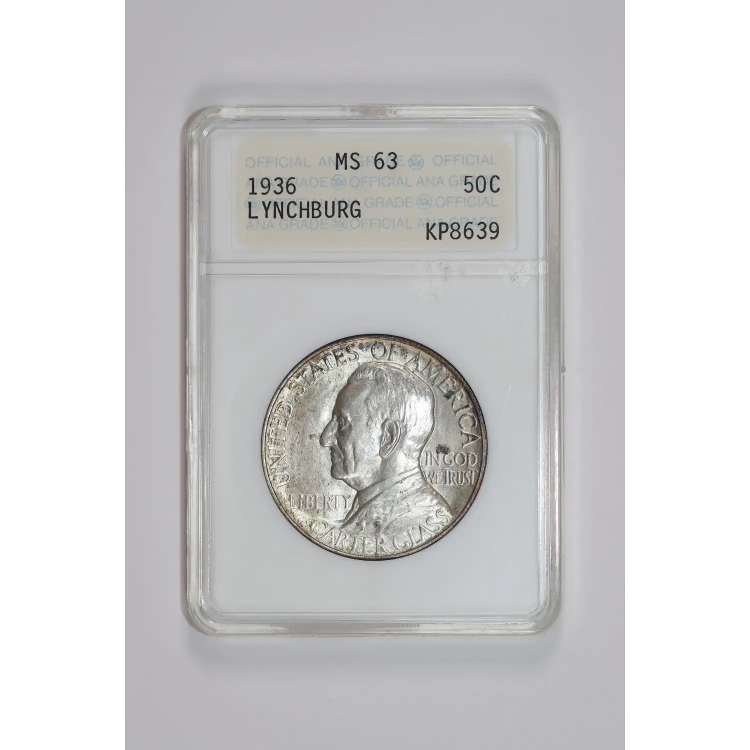 1936 LYNCHBURG COMMEMORATIVE HALF DOLLAR ANACS MS63 ANA HOLDER!